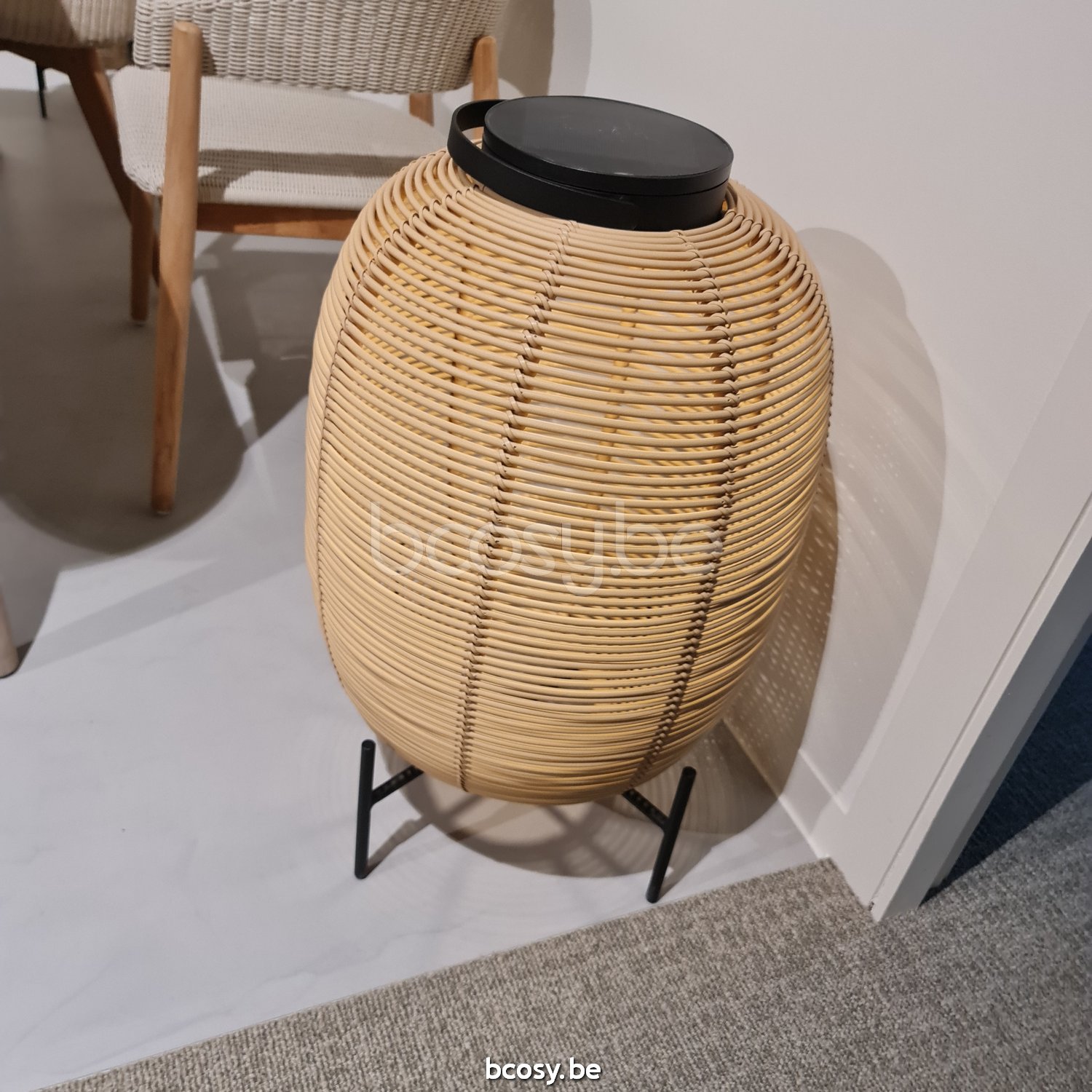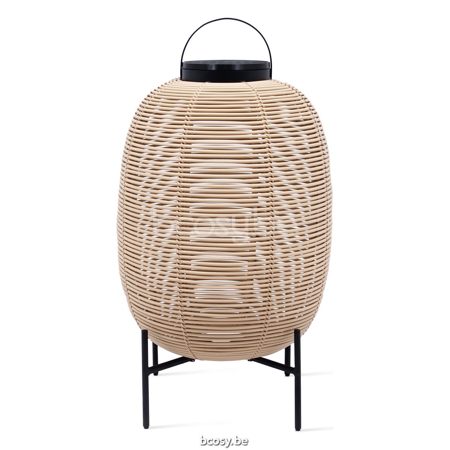 English: Vincent Sheppard Tika Lantern Steel Base Black Steel frame Camel Wicker-rope Polyethylene