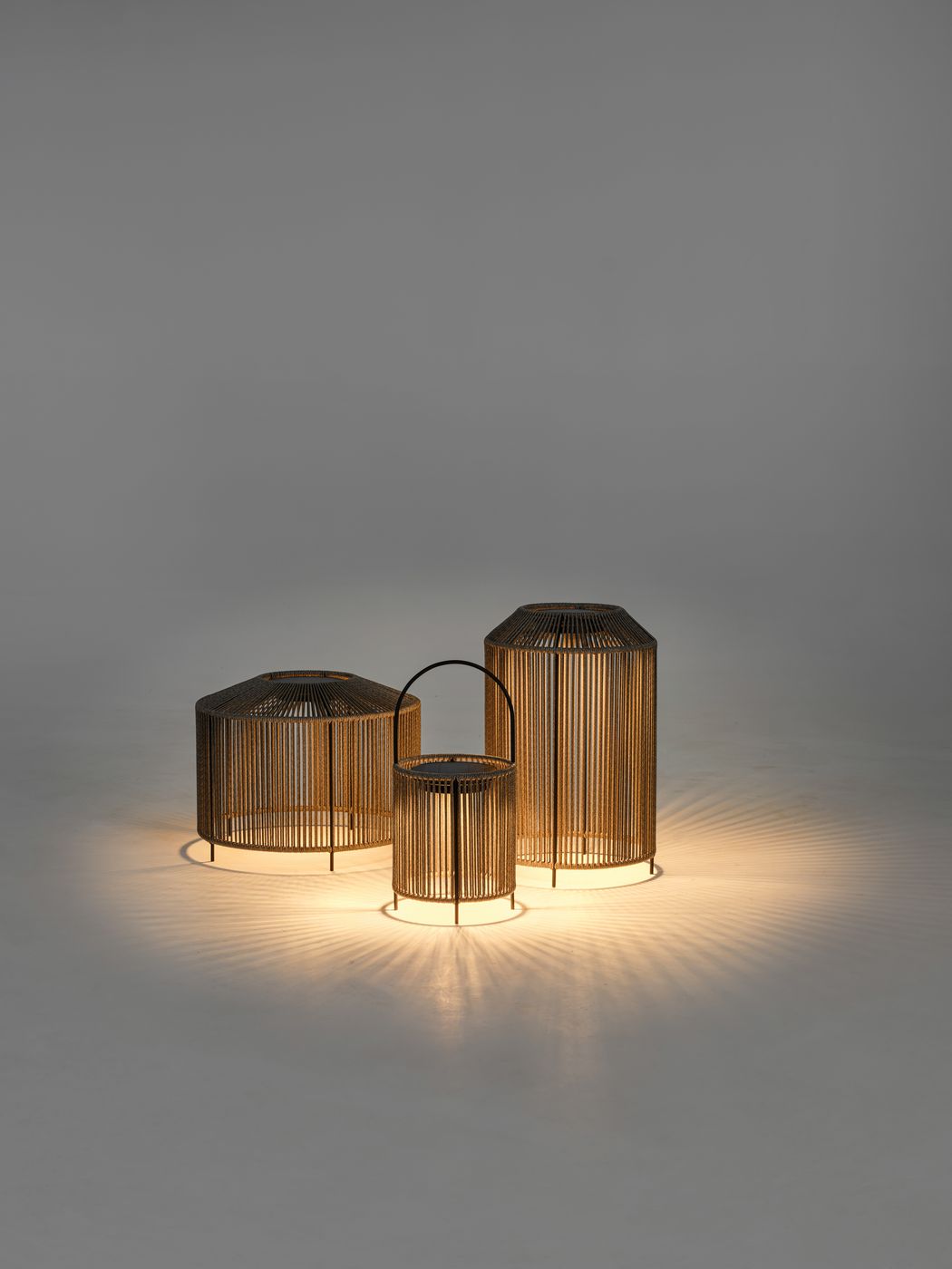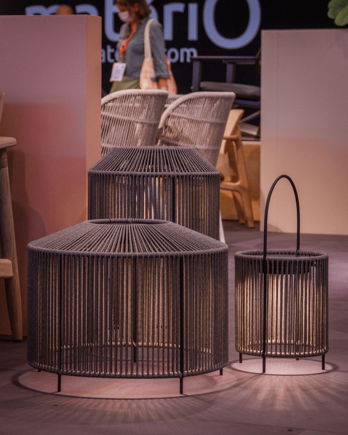 English: Vincent Sheppard Mora Small Lamp With Handle Black Steel frame Fossil Grey Rope Polypropylene