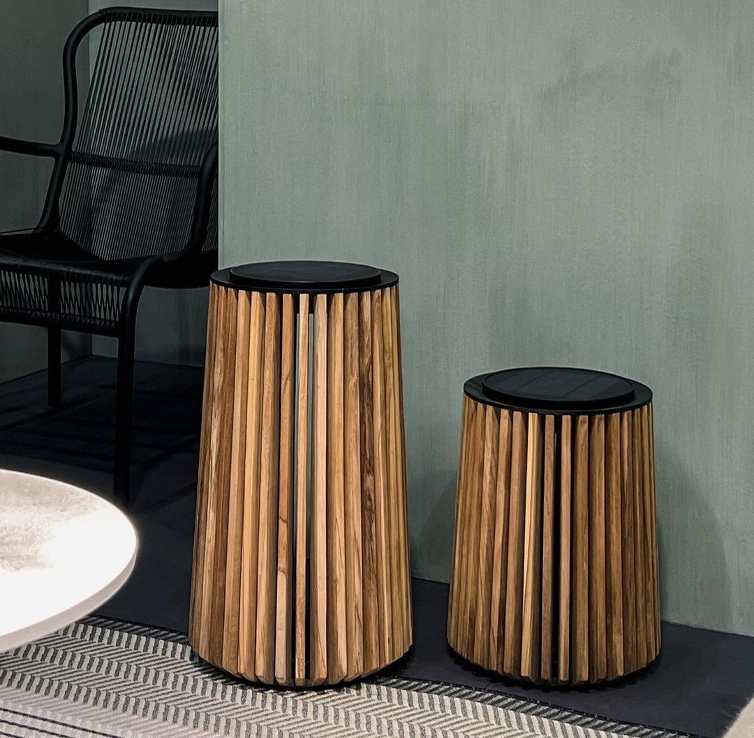 Als je op zoek bent naar een stijlvolle buitenlamp, overweeg dan de Maya lamp van Vincent Sheppard. De lantaarn heeft een frame dat gemaakt is van teakhout, waarbij de teakhouten latjes de LED-module omarmen. Dit creëert een prachtig contrast met de zwart gepoederlakte details. De LED-module van de lamp werkt op zonne-energie en is voorzien van een ingebouwde lichtsensor. De Maya lamp is beschikbaar in twee formaten: medium en large.