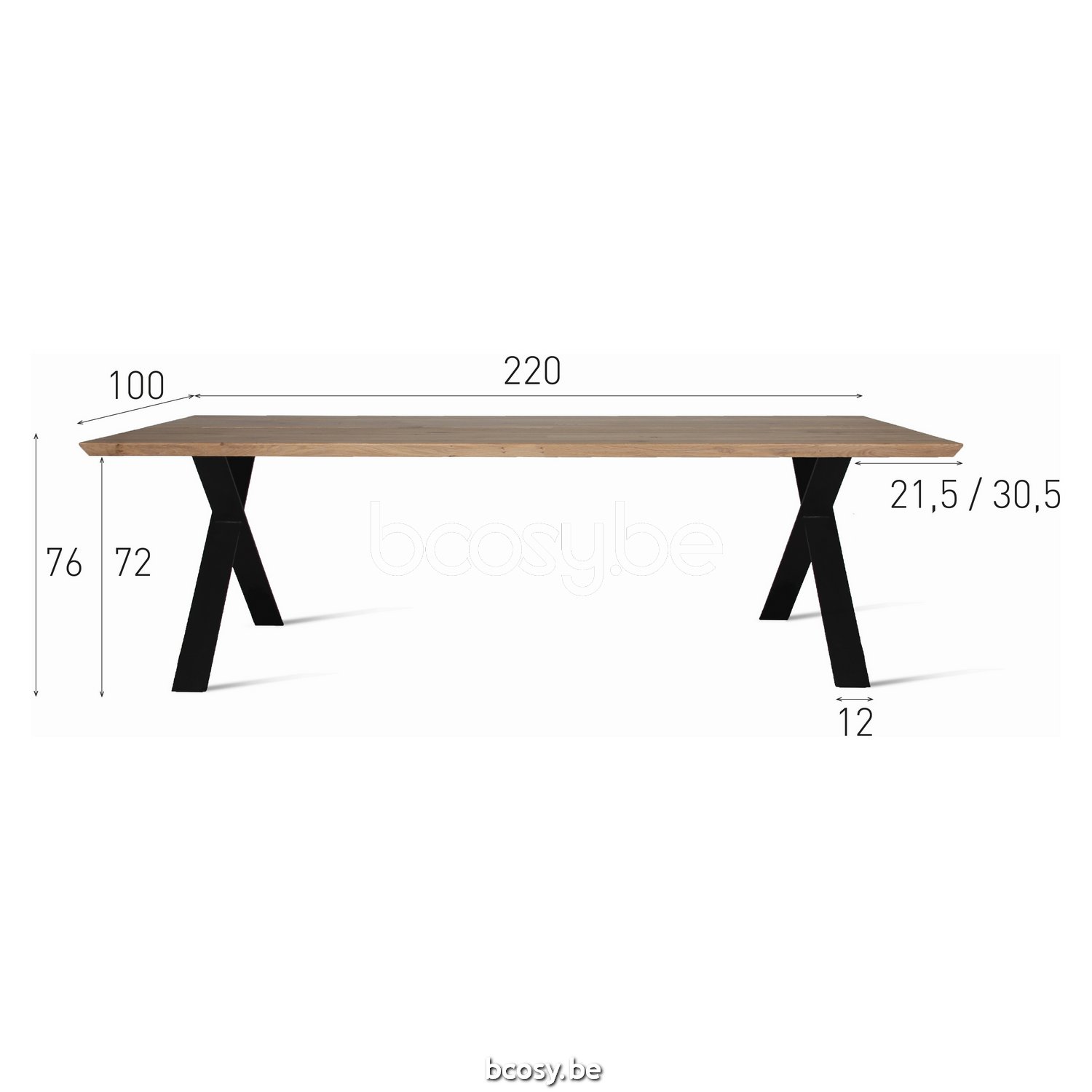 Vincent Sheppard Albert Eettafel eendelig blad 220x100 Zwart Gepoedercoat Stalen X frame Natuur Eiken Tafelblad