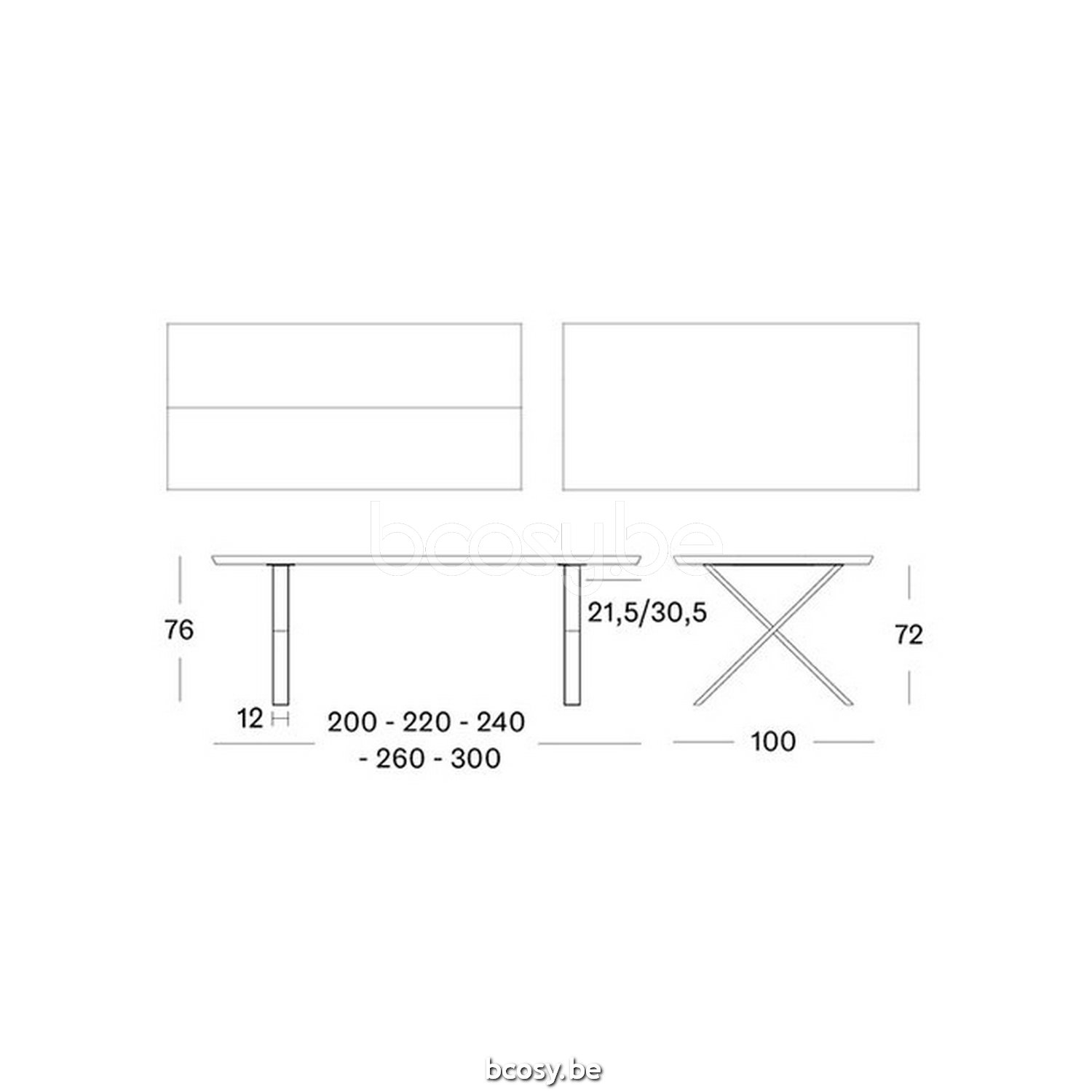 Vincent Sheppard Albert X Tisch Albert Esstisch einteilige Platte 220x100 Rahmen aus Schwarz pulverbeschichtet Stahl X