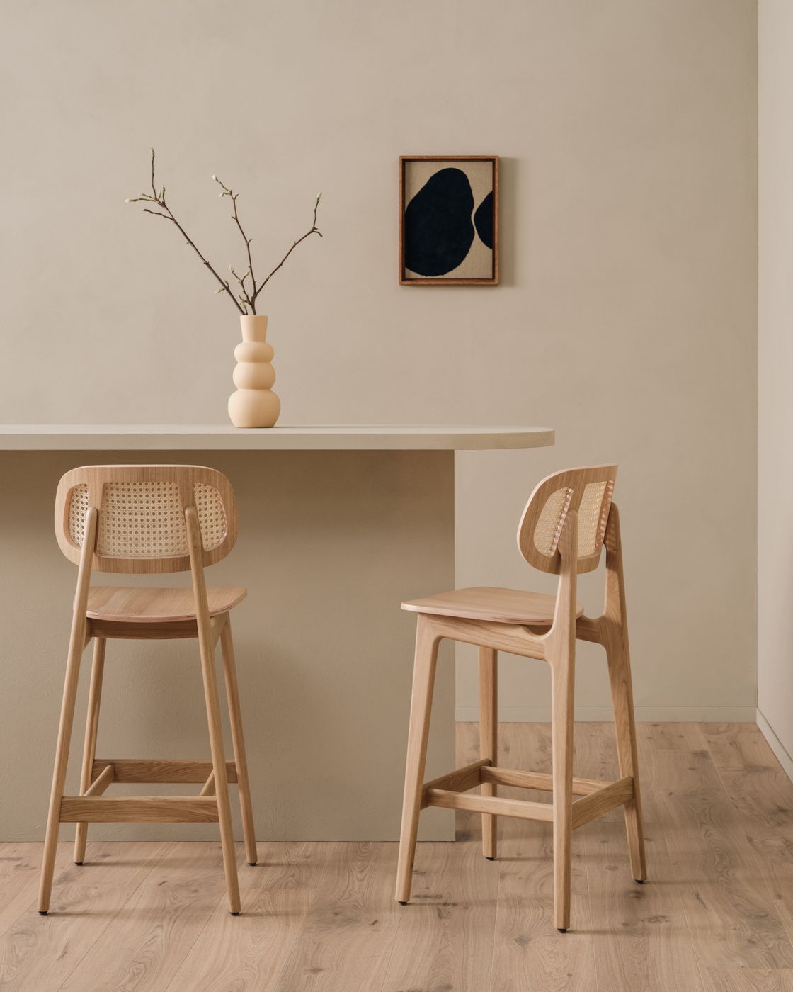 English: Vincent Sheppard Titus Counter Stool Natural Varnish Oak frame Natural Varnish Oak Cane Backrest Plywood seat