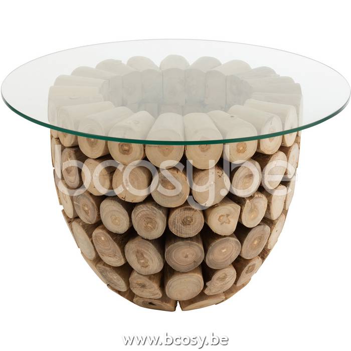 Jline Bijzettafel Schijven Open Teak Hout Naturel Glas