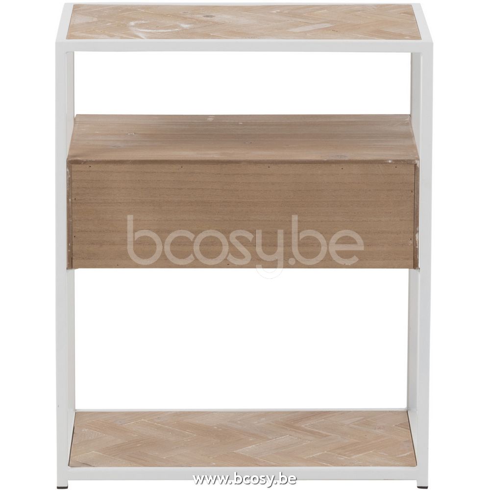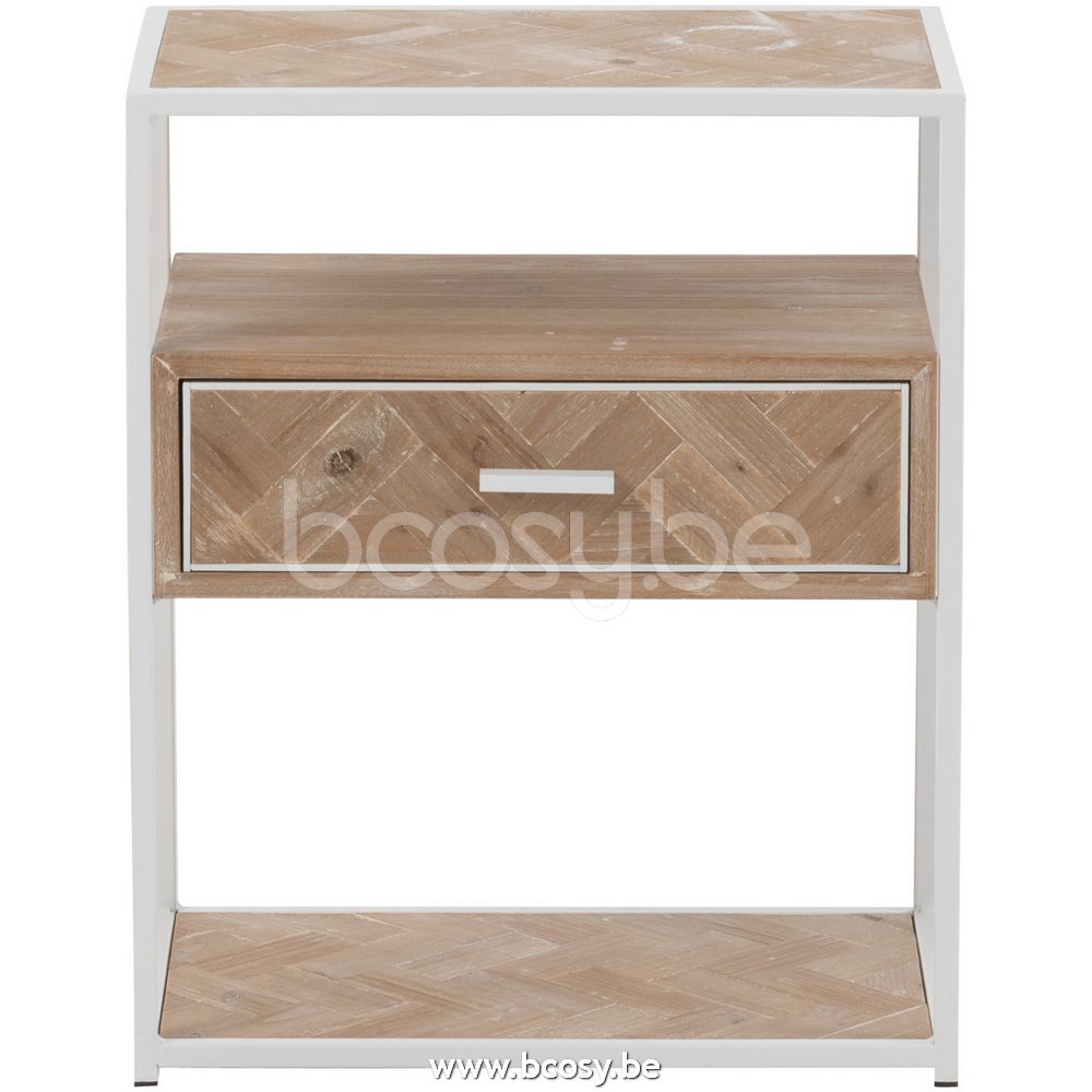 Jline Bijzettafel Zigzag 1 Lade Hout Metaal Naturel Wit