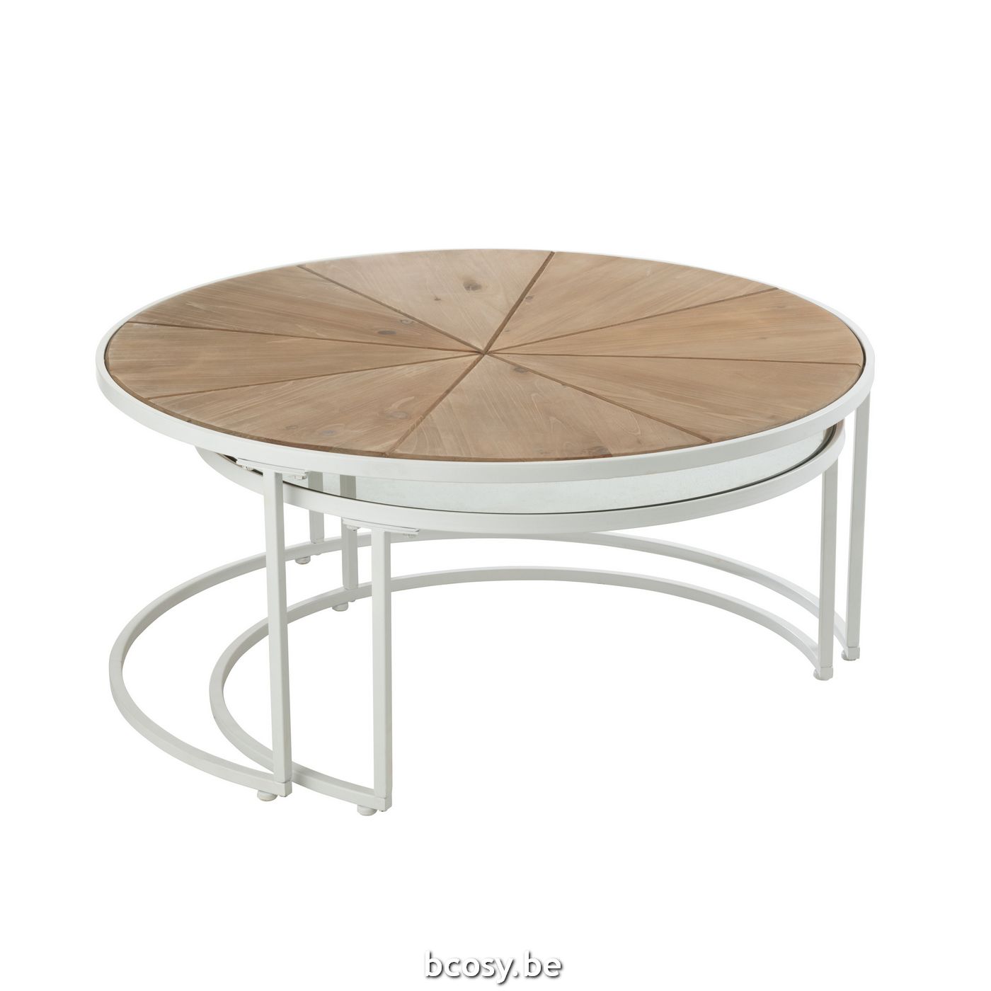 Jline Set Van Twee Bijzettafels Relax Metaal Hout Wit Naturel