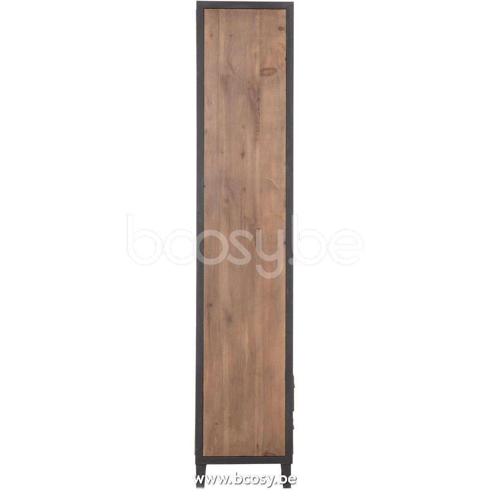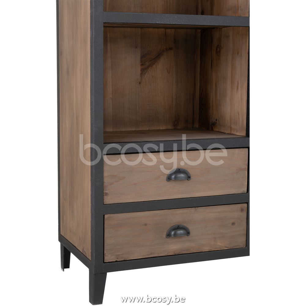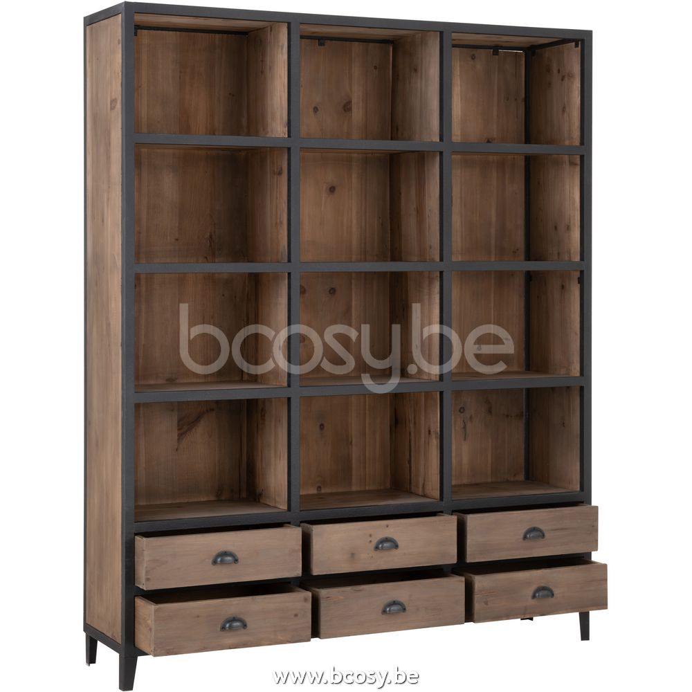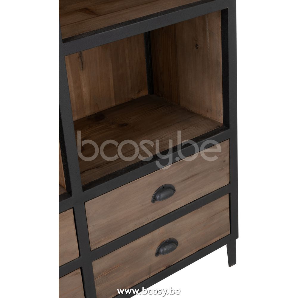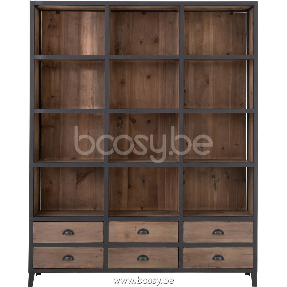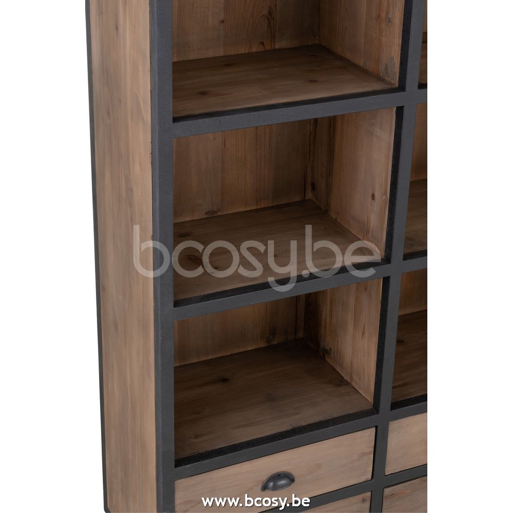 Jline Boekenkast 12 Vakken 6 Lades Hout Metaal Naturel Zwart