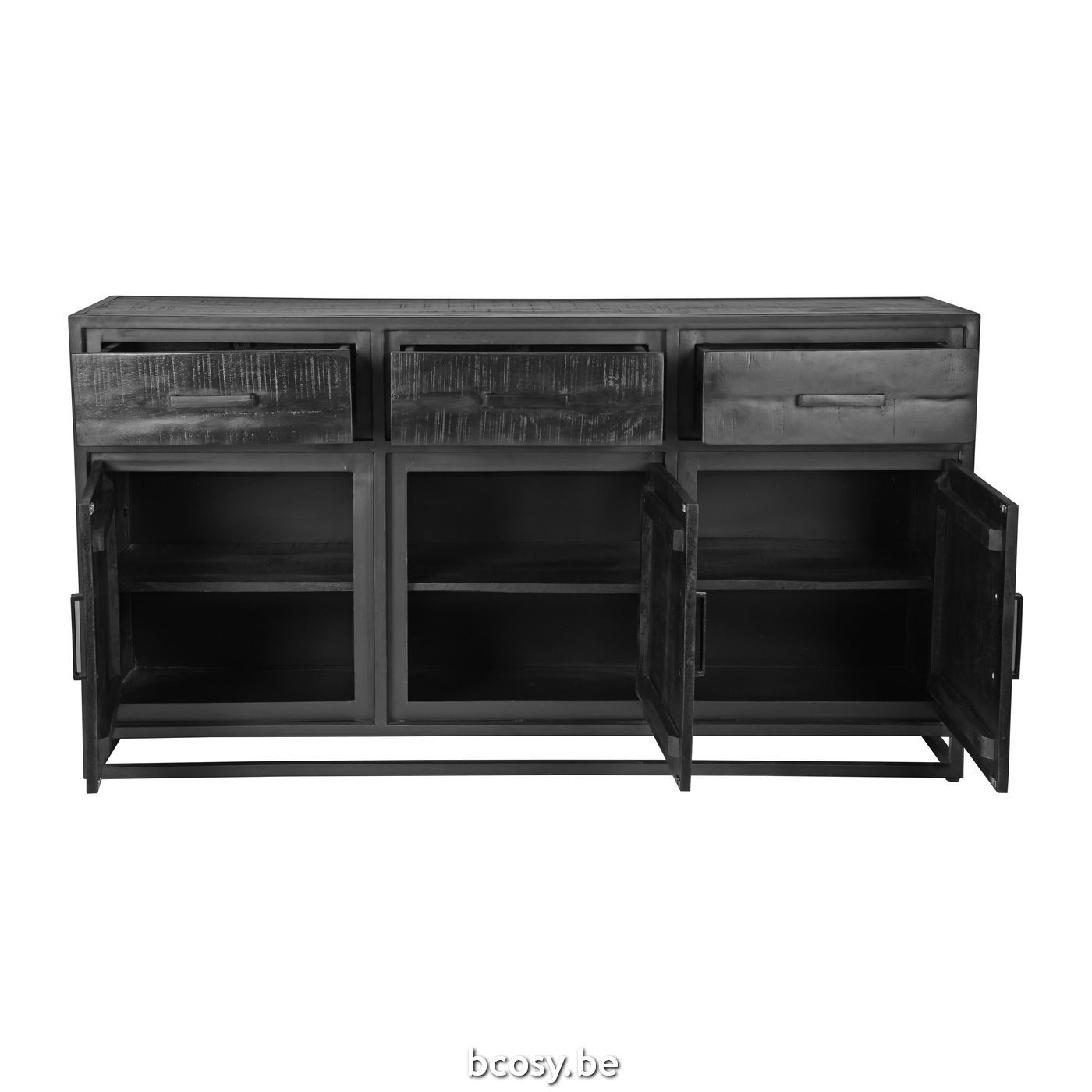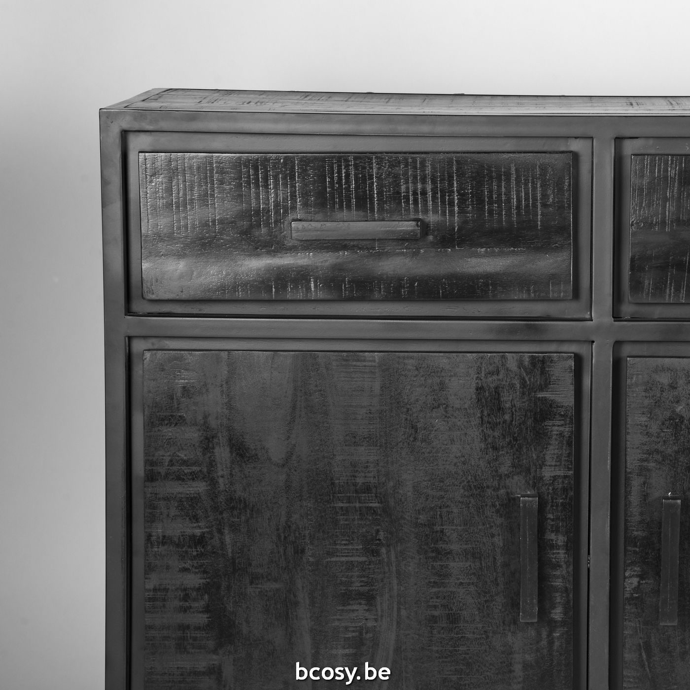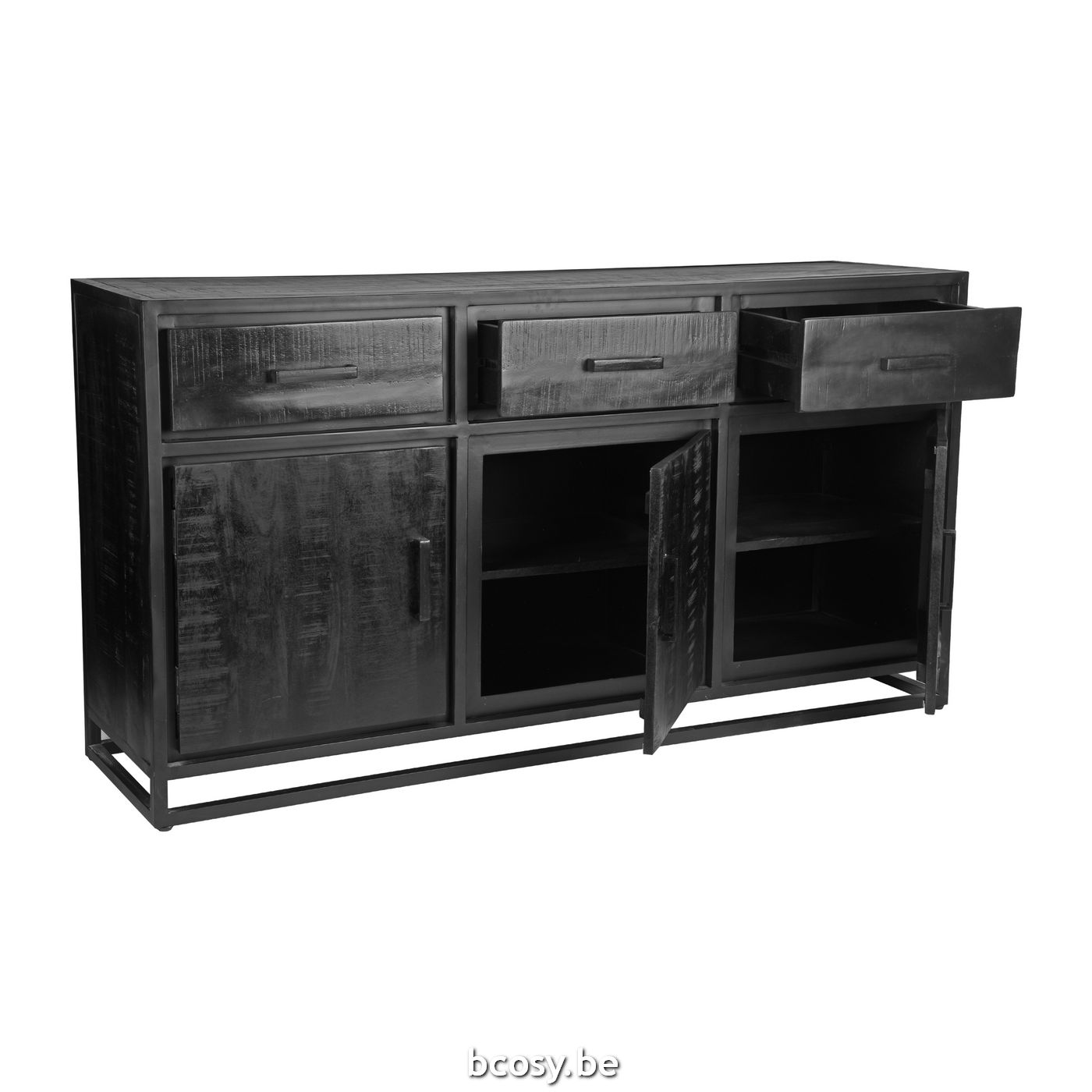 Dressoir Chili van LABEL51 is een prachtig meubel uitgevoerd in zwart mangohout. De gave combinatie van mangohout en metaal zorgt ervoor dat het een stoer meubel is met een warm en sfeervol karakter waar je alle kanten mee op kunt.