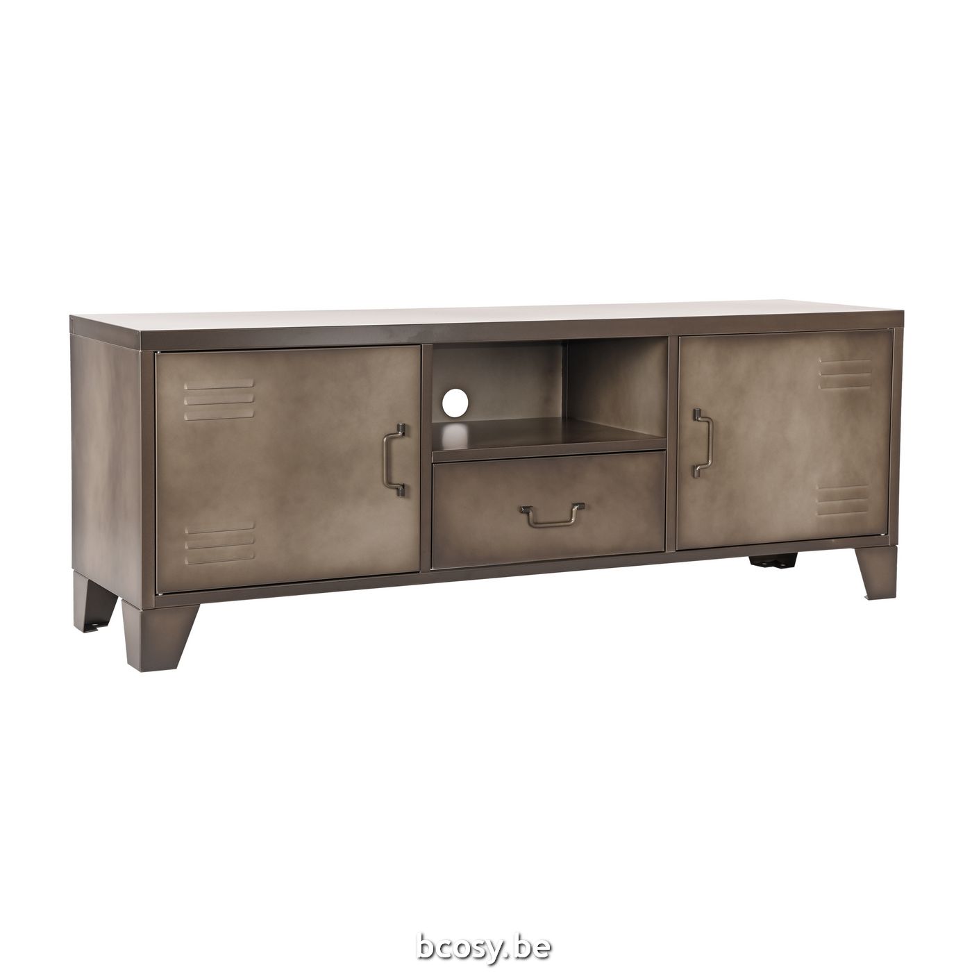 Français: LABEL51 Meuble TV Fence Gris Métal