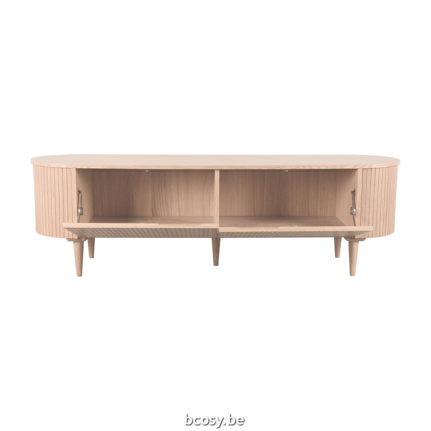 Tv-meubel Oliva van LABEL51 is een prachtig meubel uitgevoerd in eikenfineer. Een speels vormgegeven meubel waar al jouw spullen stijlvol in kunnen worden opgeborgen.