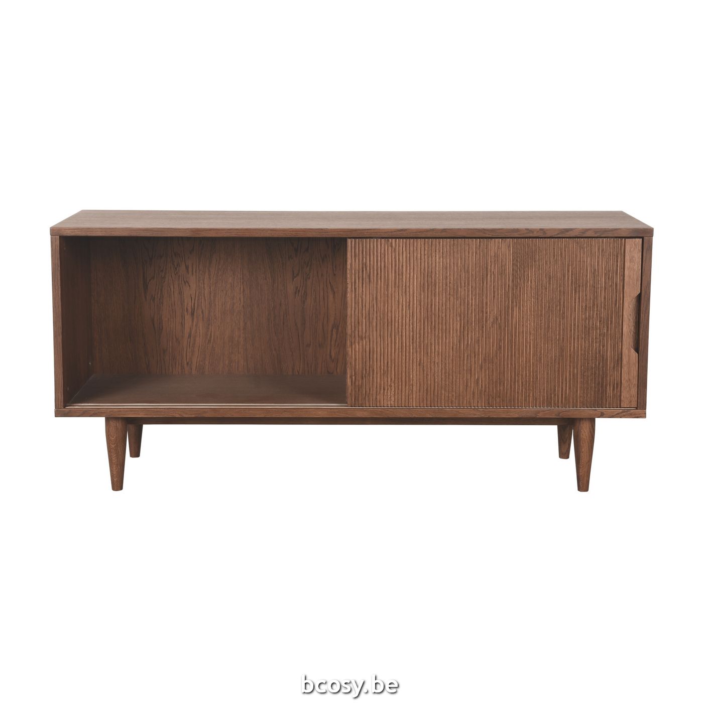 Tv-meubel Jule van LABEL51 is een strak meubel, uitgevoerd in eikenfineer. Een slim vormgegeven meubel waar op stijlvolle wijze spullen in opgeborgen kunnen worden.