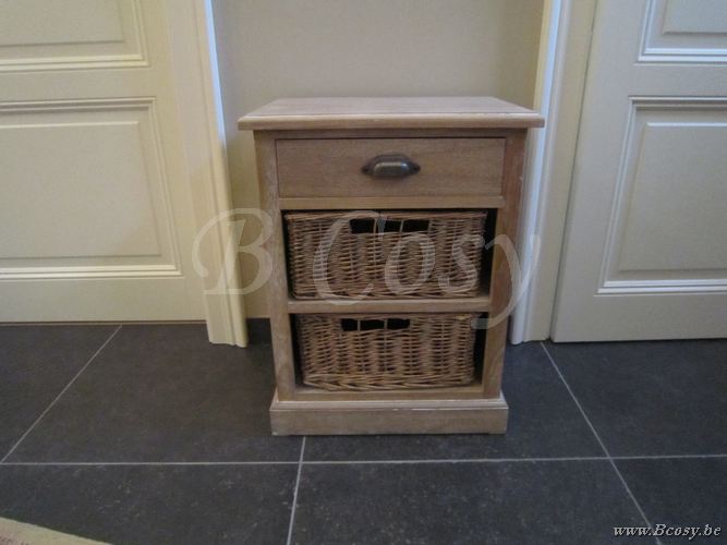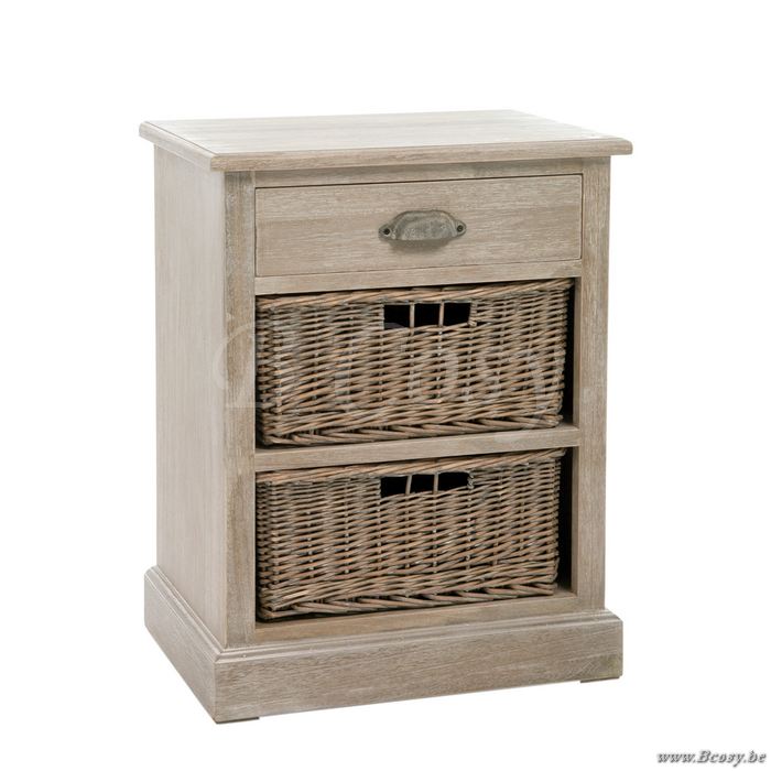 Jline Nachtkast 2 Manden 1 Lade Hout Grijs Whitewashed