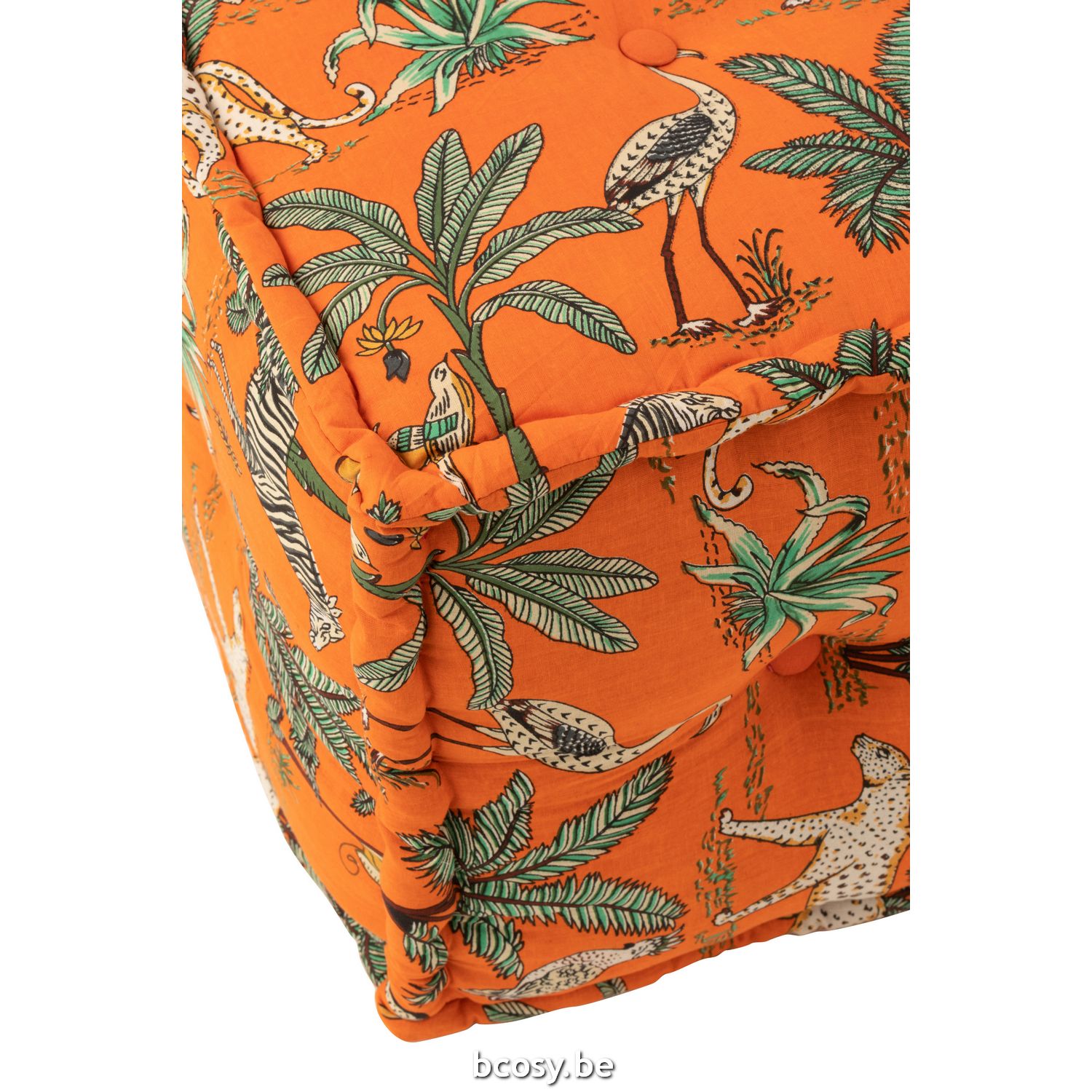 Jline Poef Kubus Exotisch Dieren Planten Katoen Oranje