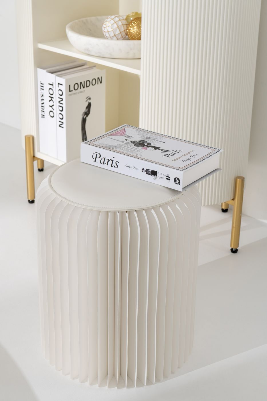 J Line Pouffe Foldable Paper Off-White