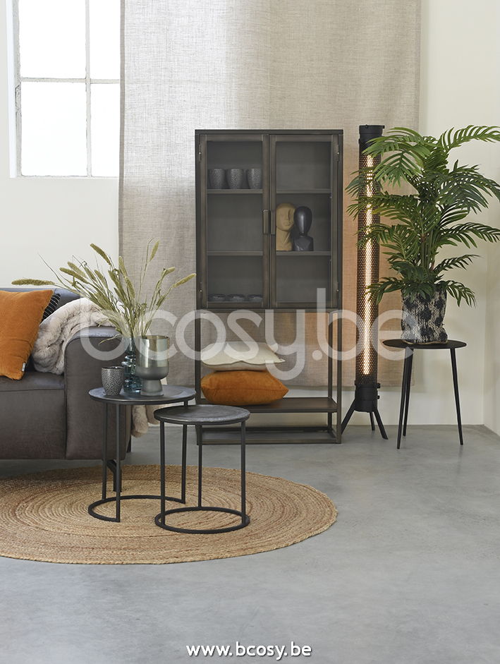 Salontafel set Pair van LABEL51 is een ronde tafelset bestaande uit twee tafels, vervaardigd uit gegoten metaal en uitgevoerd in antiek ash. Zijn naam zegt het al: deze set tafels bestaat uit twee tafels waar je alle kanten mee op kunt.