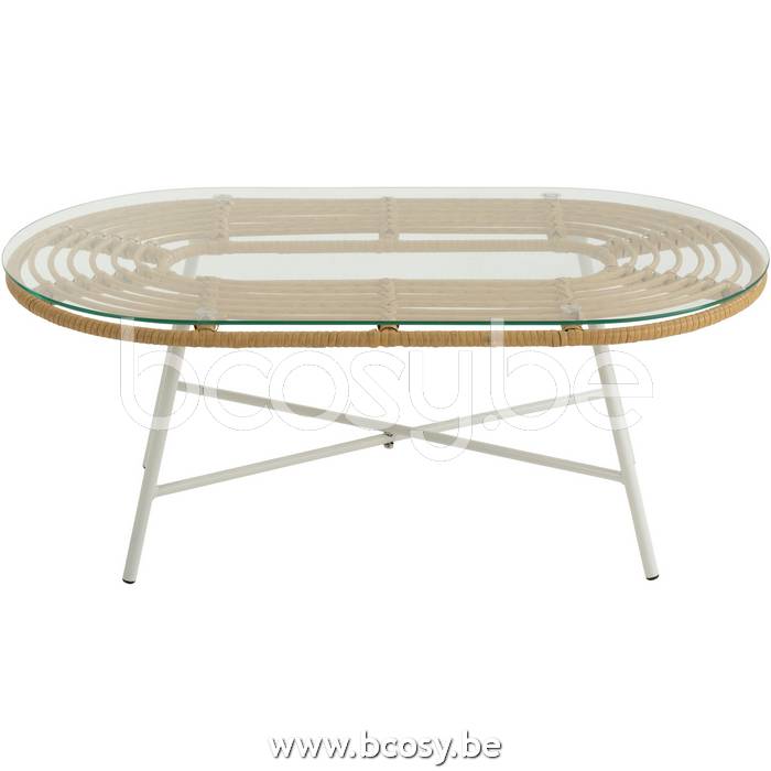 Jline Tafel Laag Ovaal Buiten Metaal Glas Naturel Wit