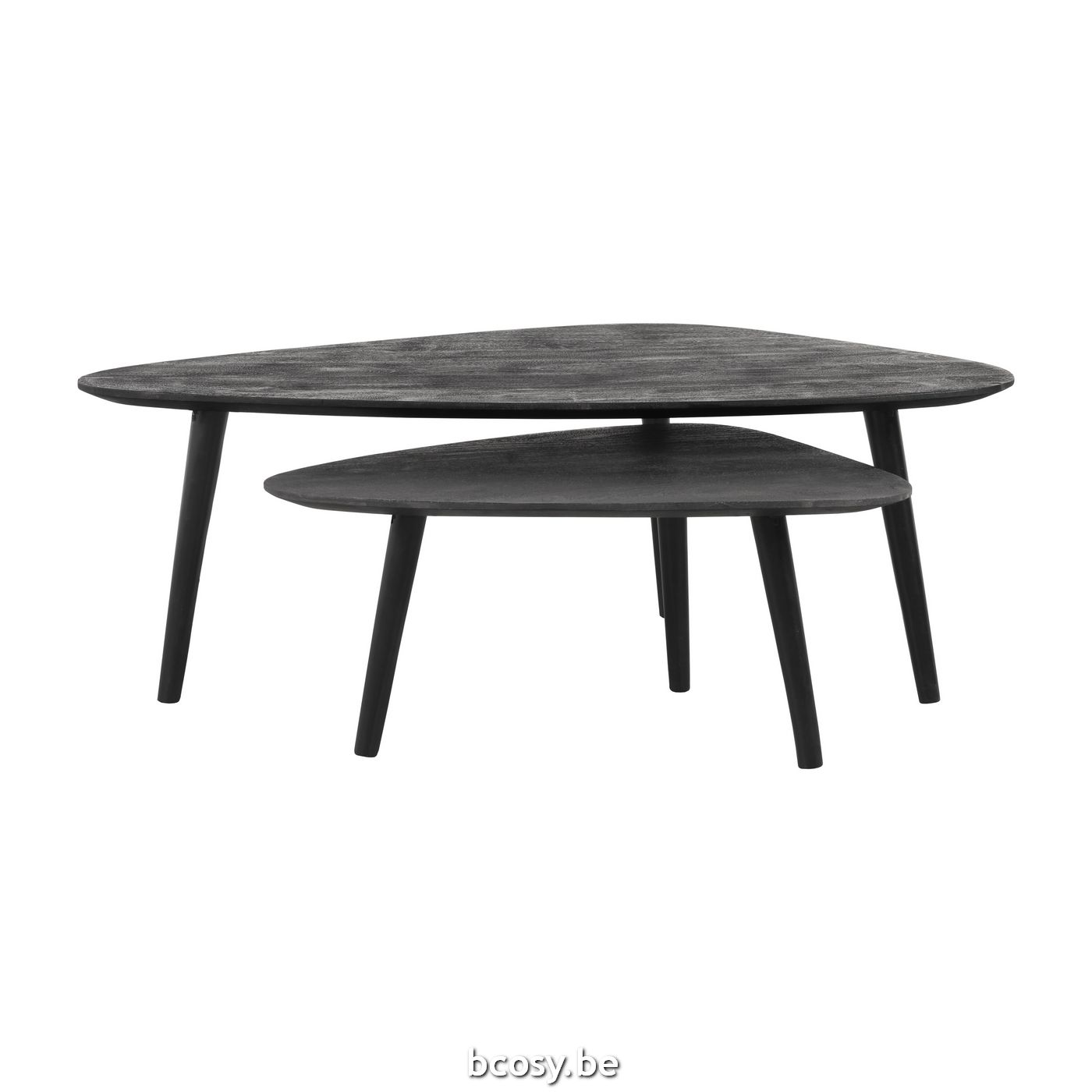 Salontafel set Rock van LABEL51 is een handige set uitgevoerd in zwart mangohout. Salontafel set Rock bestaat uit twee tafels, een grotere van 110x64x39 cm en een kleinere van 69x49x31 cm. Rock is zo een ontzettend handige set die je door schuifruimte de mogelijkheid geeft de tafels geheel naar eigen wens neer te zetten. Een echte speelse musthave!