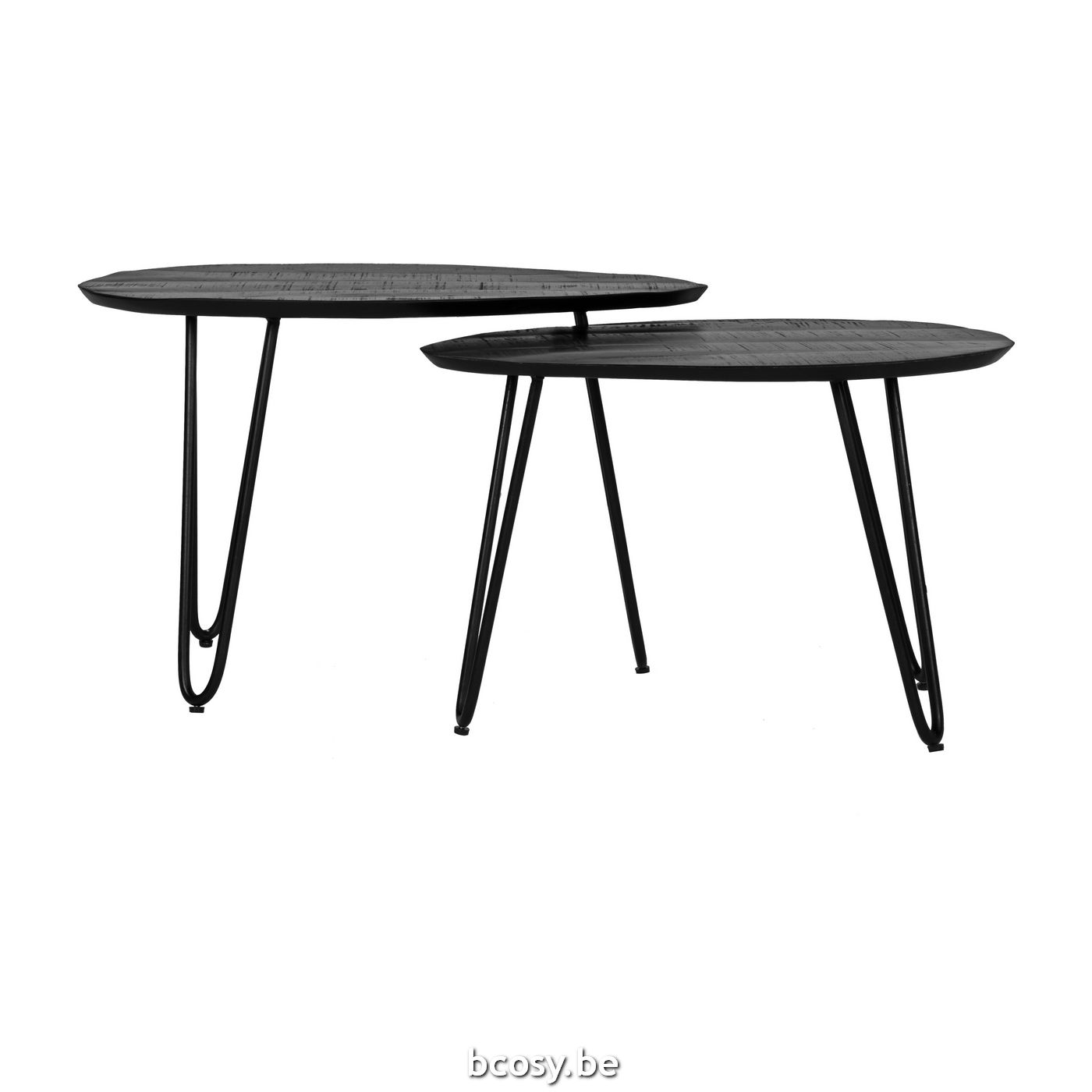 Salontafel set Frisk van LABEL51 bestaat uit twee tafels, gemaakt van grof zwart mangohout en zwart metaal. Frisk is zo een ontzettend handige set die je door schuifruimte de mogelijkheid geeft de tafels geheel naar eigen wens neer te zetten. Een echte speelse musthave!
