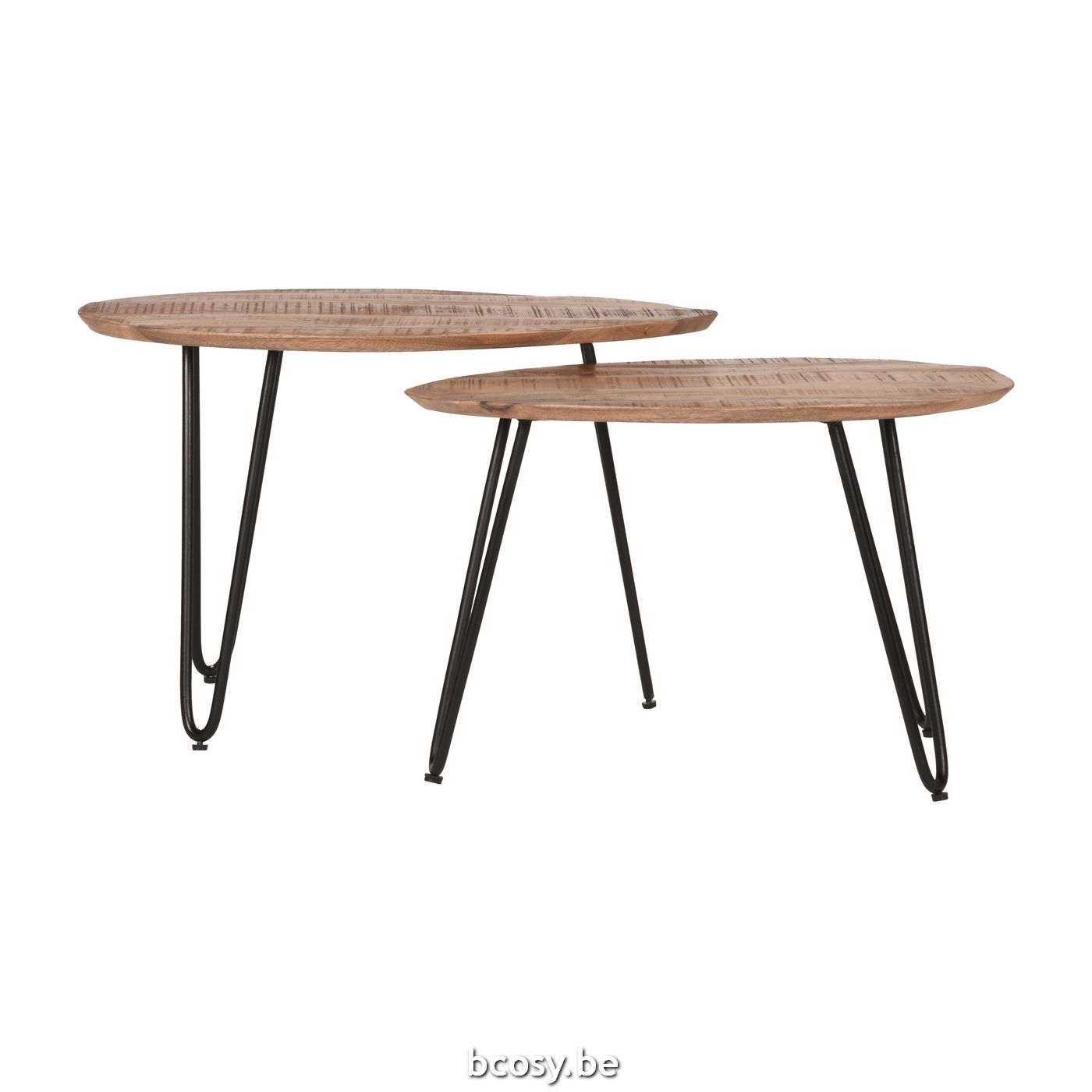 Salontafel set Frisk van LABEL51 bestaat uit twee tafels, gemaakt van grof rough mangohout en zwart metaal. Frisk is zo een ontzettend handige set die je door schuifruimte de mogelijkheid geeft de tafels geheel naar eigen wens neer te zetten. Een echte speelse musthave!