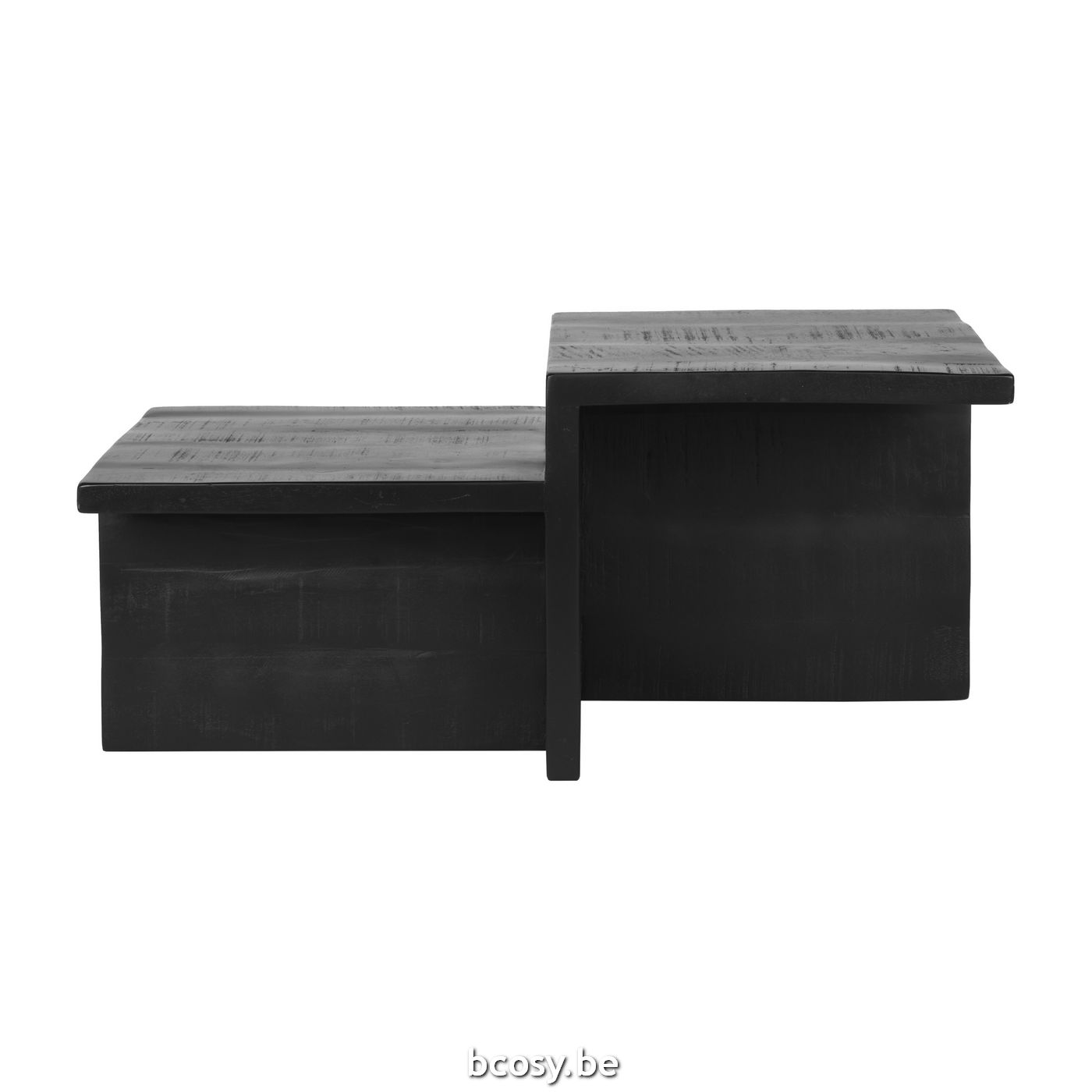 Salontafel Skip van LABEL51, uitgevoerd in zwart mangohout heeft zijn naam te danken aan de gave verspringingen in hoogte en diepte. Aan geen kant is deze tafel hetzelfde en daarom een heel tof â€eœobject’ in huis.