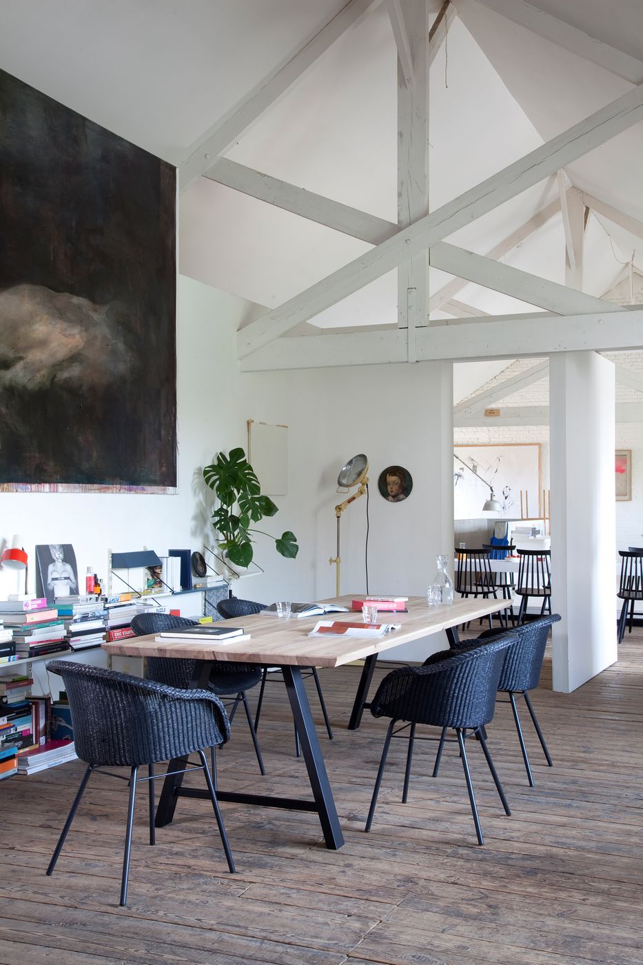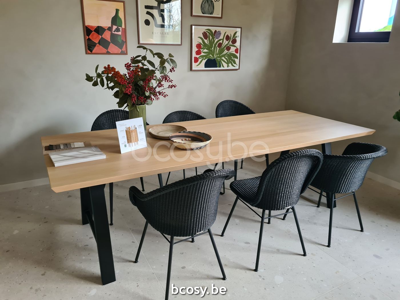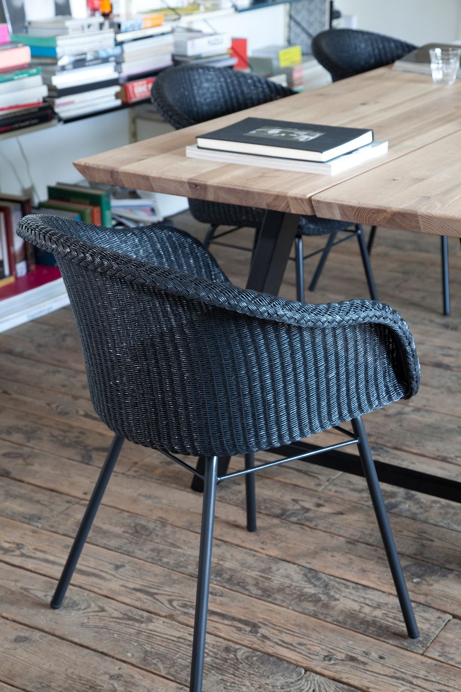 English: Vincent Sheppard Avril Dining Chair Black Powder Coated Steel A frame Black Lloyd Loom
