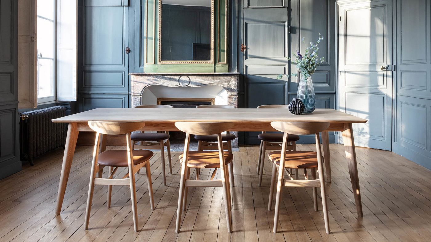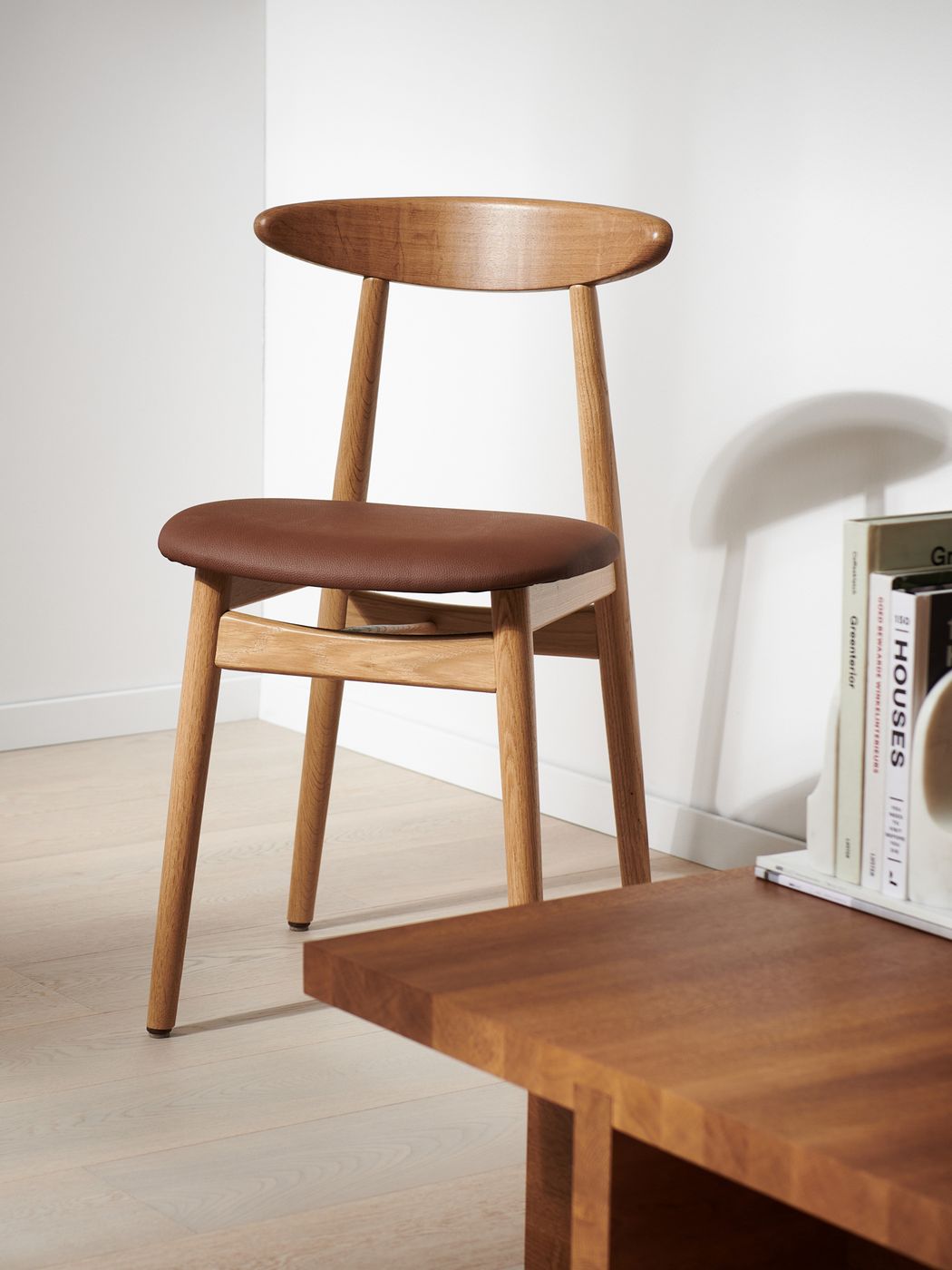 English: Vincent Sheppard Teo Dining Chair Natural Oak frame Chestnut Vegan Leather
