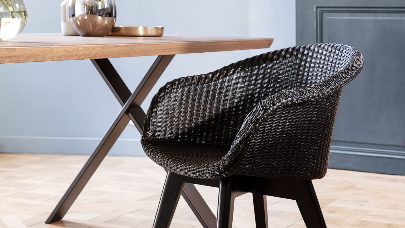 English: Vincent Sheppard Avril Dining Chair Black Stained Hardwood frame Black Lloyd Loom