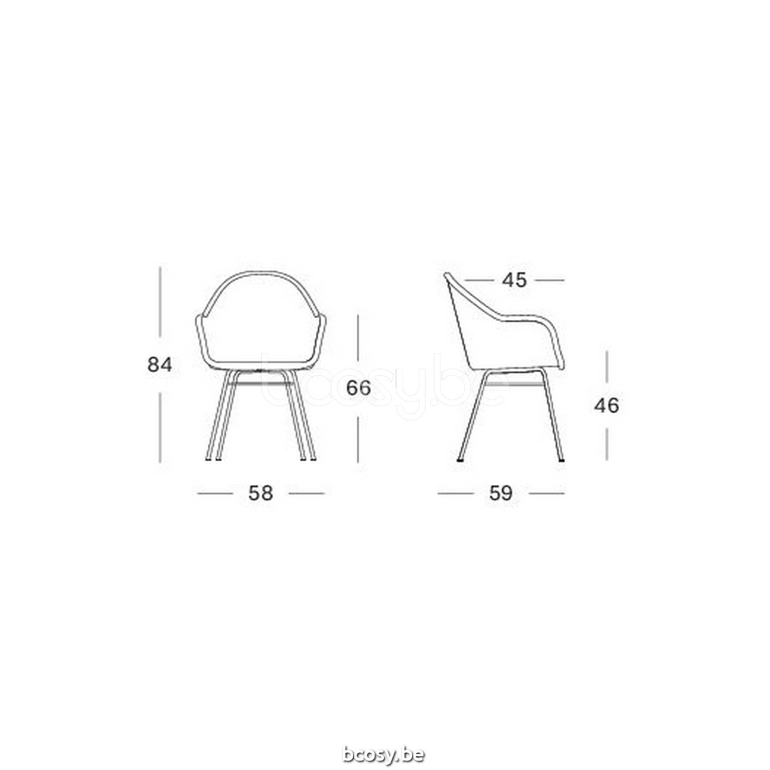 Afmetingen/Dimensions/Dimensionen: L=58 cm B=59 cm H=84 cm SH=46 cm AH=66 cm SD=45 cm