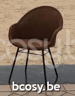 Materiaal: Stoel met hoge rug en Lloyd loom zitting met zwart gepoedercoat stalen A onderstel. Kantelbare viltglijders, zwarte nylon glijders verkrijgbaar op aanvraag.