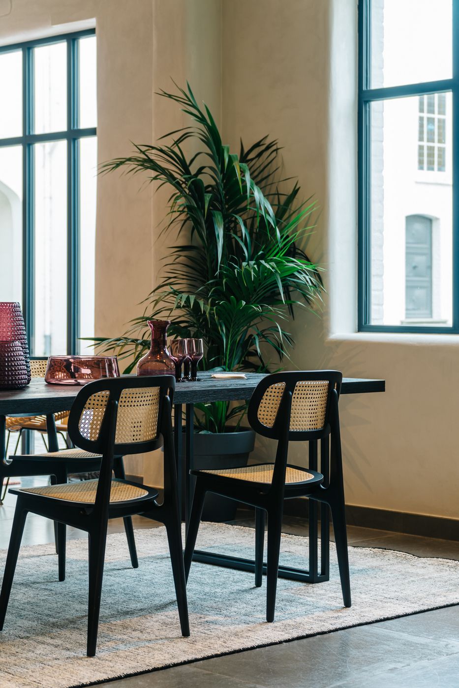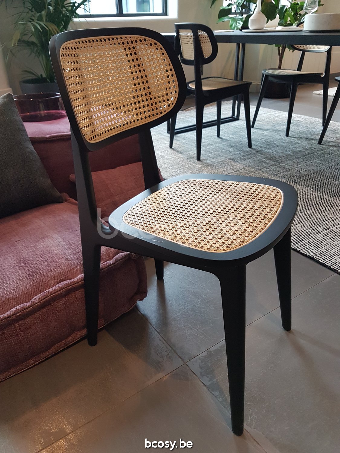 English: Vincent Sheppard Titus Dining Chair Black Stained Oak frame Cane Seat Cane Backrest