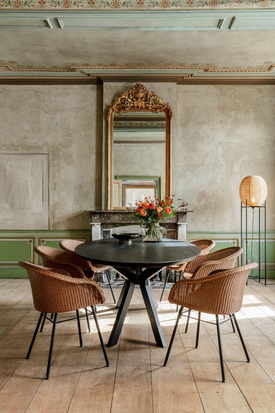 English: Vincent Sheppard Avril Dining Chair Black Powder Coated Steel A frame Copper Lloyd Loom