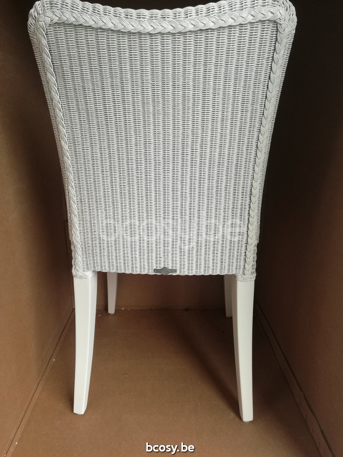 Materiaal: Stoel met gelakt hardhouten frame (kleur aangepast aan de kleur van de zitting) met Lloyd loom bekleding. Niet leverbaar in kleur Clear. Standaard zonder glijders. Zwarte nylon of vilten glijders verkrijgbaar op aanvraag.