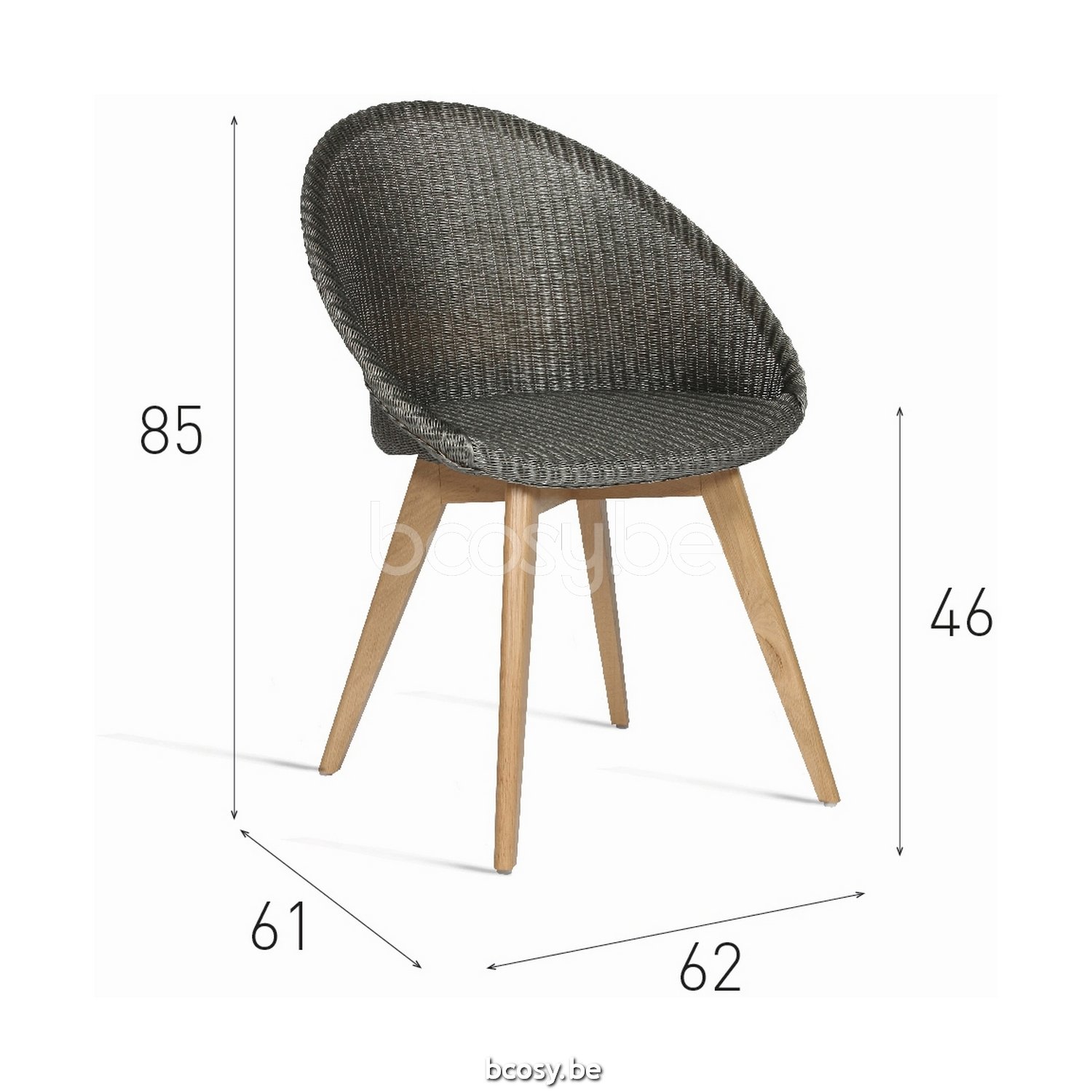 Afmetingen/Dimensions/Dimensionen: L=62 cm B=61 cm H=85 cm SH=46 cm SD=45 cm