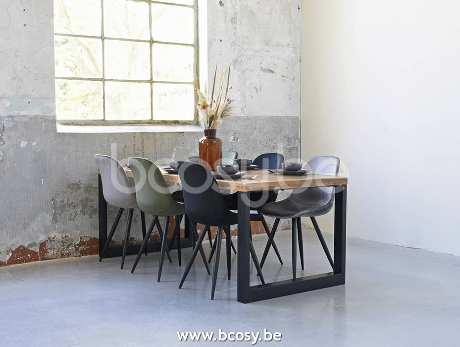 Français: LABEL51 Chaise de salle à manger Capri Noir Velours Zwart Metalen Frame