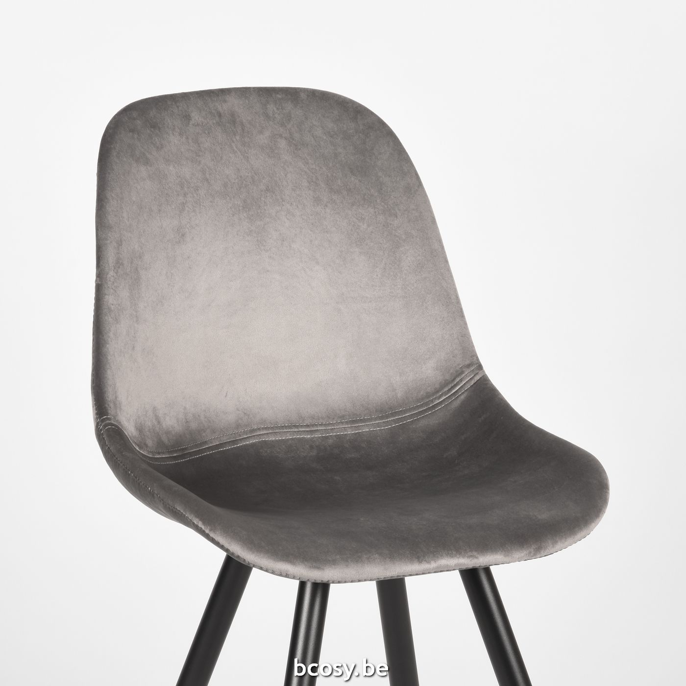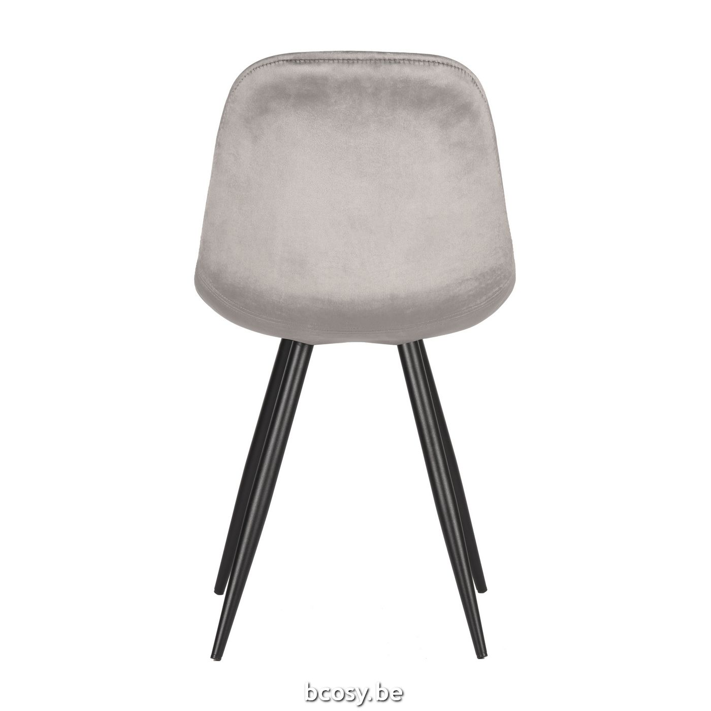 Français: LABEL51 Chaise de salle à manger Capri Gris Velours Zwart Metalen Frame