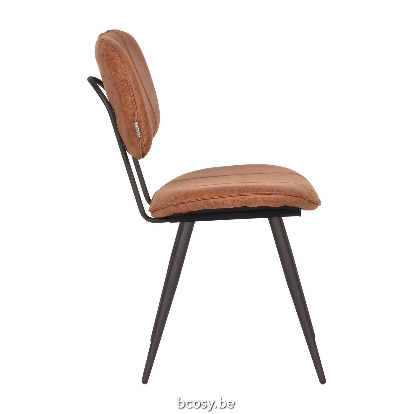 LABEL51 Eetkamerstoel Fos - Cognac - Leder - Zwart Metalen Frame
