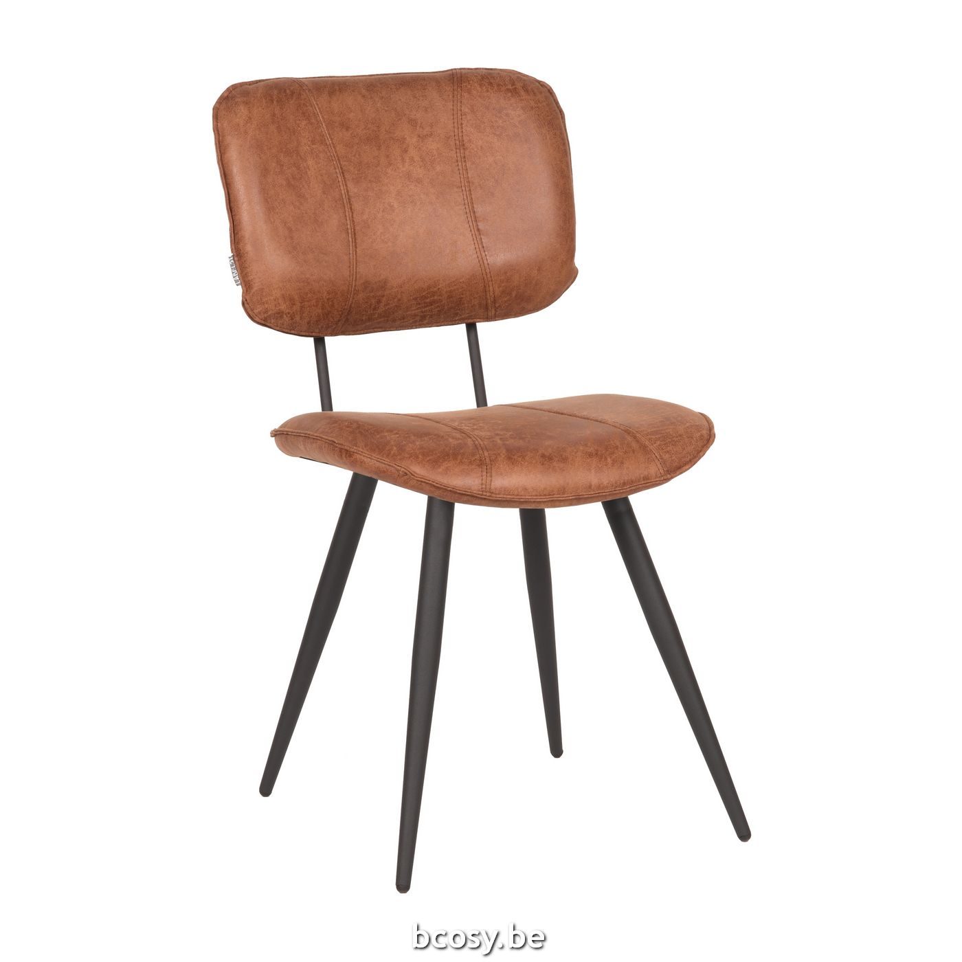 Français: LABEL51 Chaise de salle à manger Fos Cognac Cuir Zwart Metalen Frame