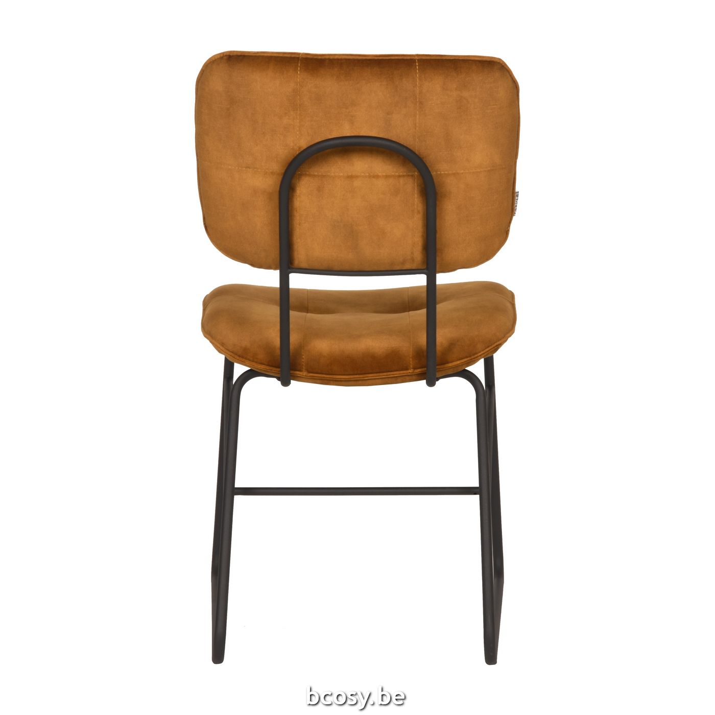 Français: LABEL51 Chaise de salle à manger Dez Ocre Velours Zwart Metalen Frame