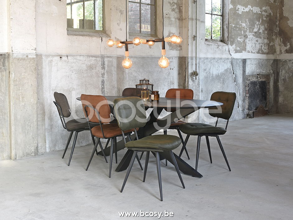 Français: LABEL51 Chaise de salle à manger Gus Army Microvezel Zwart Metalen Frame