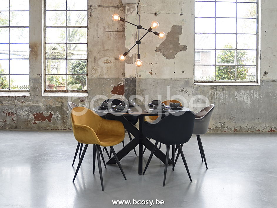 Deutsch: LABEL51 Esszimmerstühl Forli Ocker Samt Zwart Metalen Frame