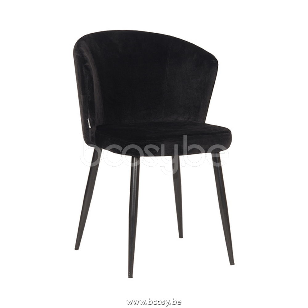 Français: LABEL51 Chaise de salle à manger Wave Noir Velours Zwart Metalen Frame