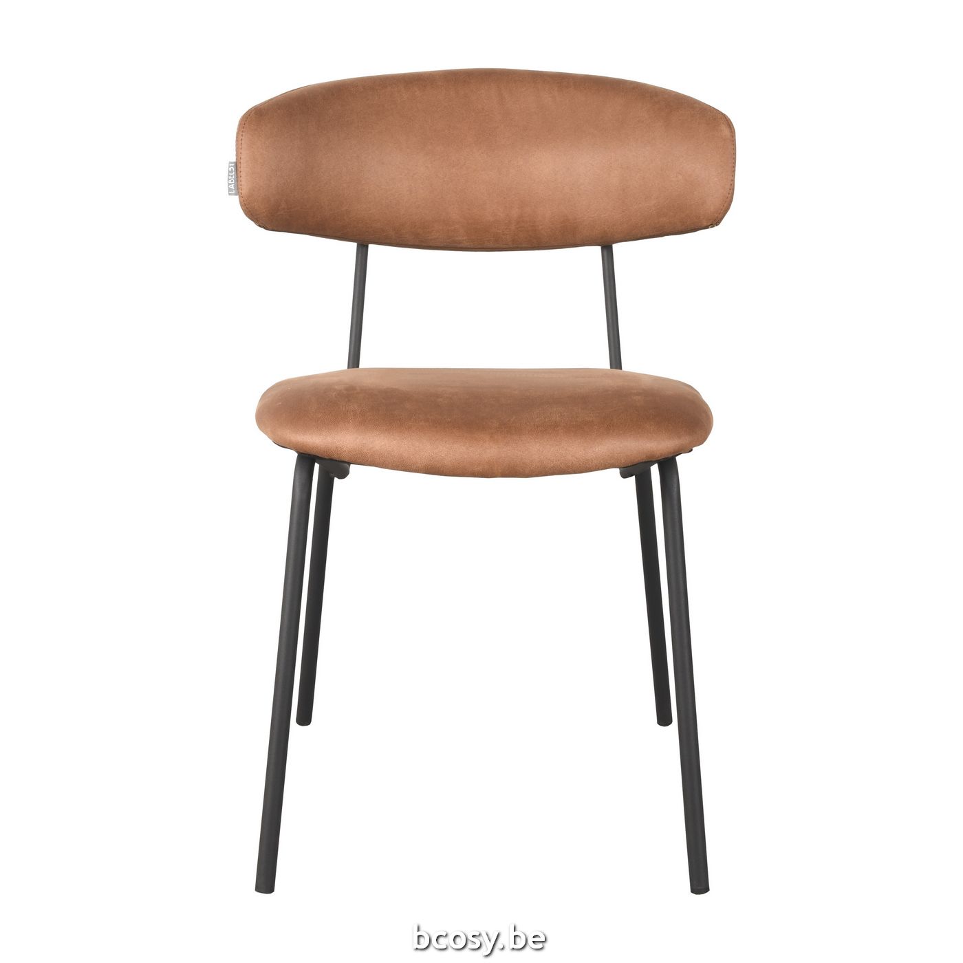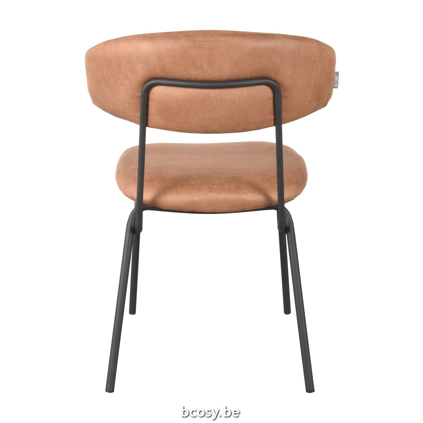 Français: LABEL51 Chaise de salle à manger Zack Cognac Micro Suede Zwart Metalen Frame