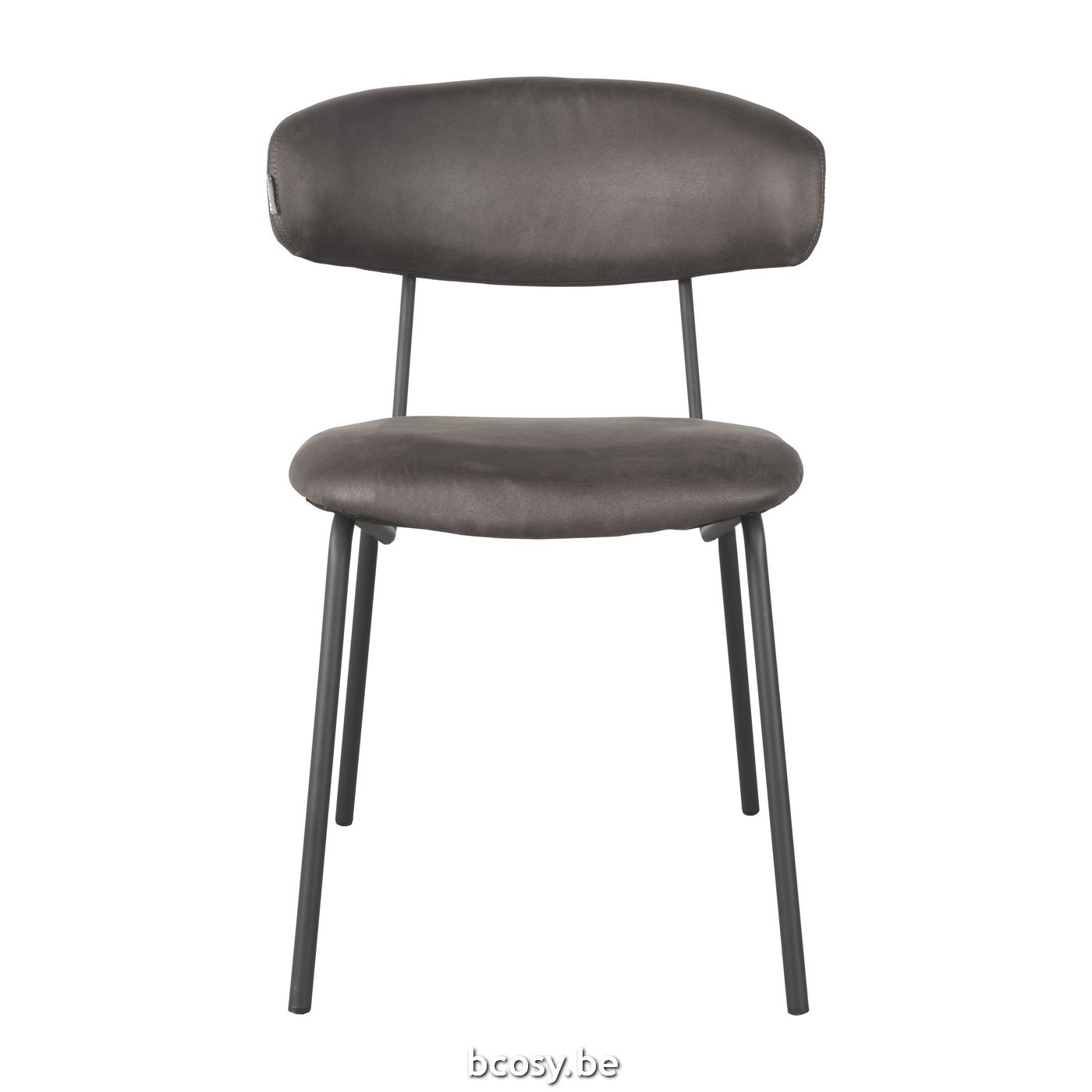Français: LABEL51 Chaise de salle à manger Zack Anthracite Micro Suede Zwart Metalen Frame
