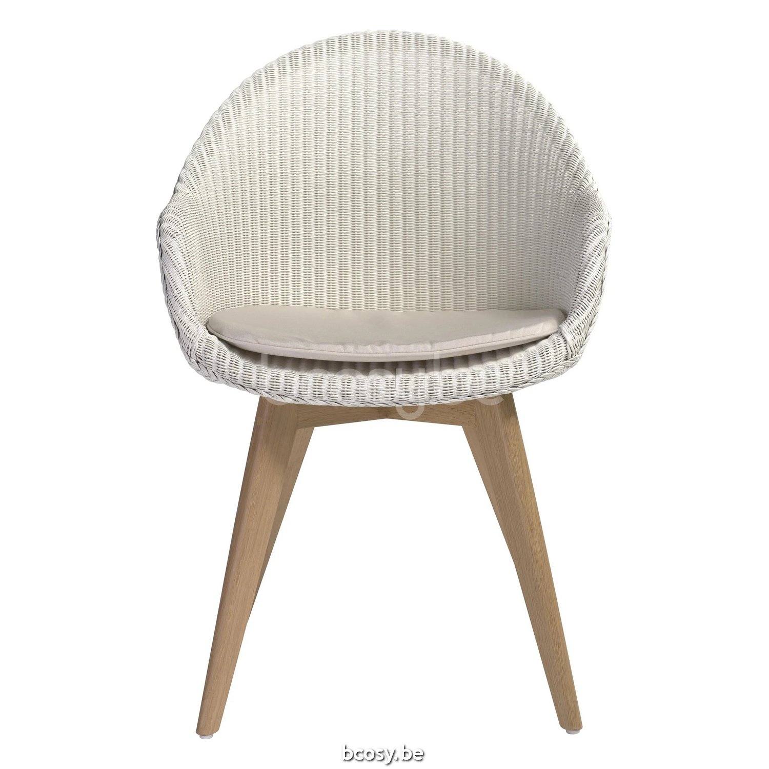 English: Vincent Sheppard Avril High Back Dining Chair Natural Oak Wood frame Broken White Lloyd Loom