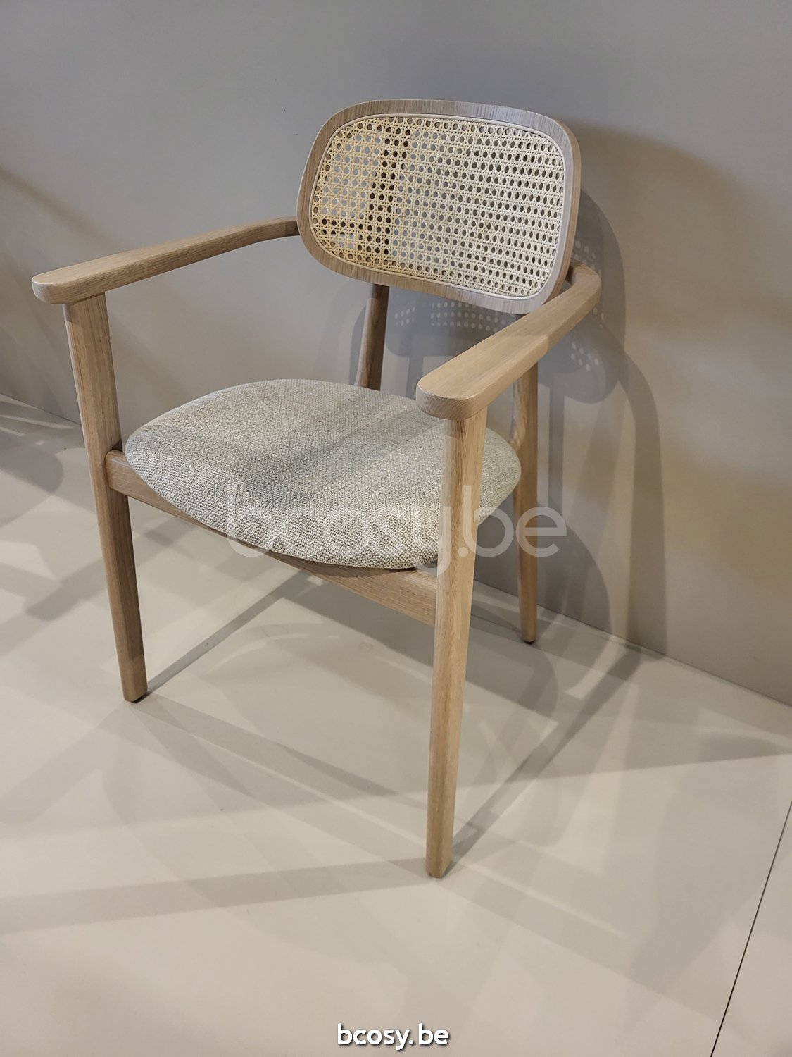 English: Vincent Sheppard Titus Dining Armchair Natural Varnish Oak frame Custom Upholstered Cane Backrest
