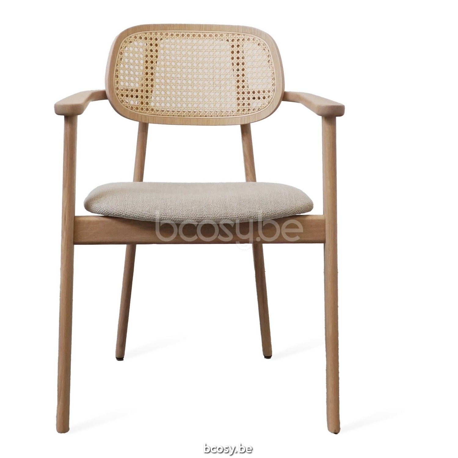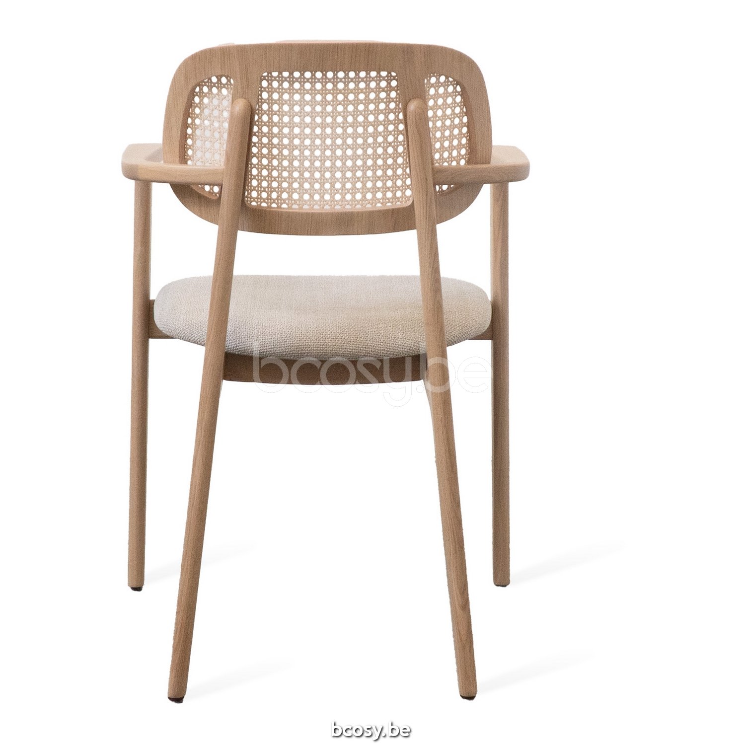 English: Vincent Sheppard Titus Dining Armchair Natural Varnish Oak frame Lime White Bouclé Cane Backrest