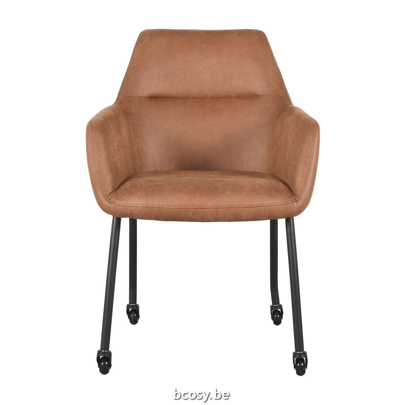 Français: LABEL51 Chaise de salle à manger Lenny Cognac Micro Suede Zwart Metalen Frame