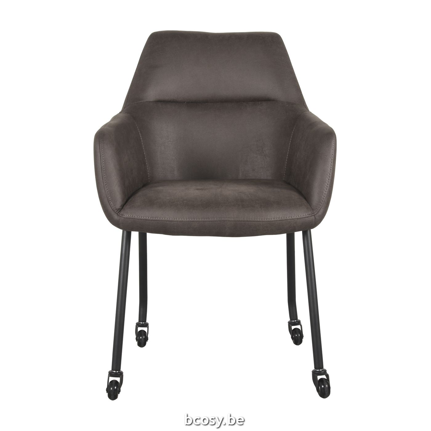 LABEL51 Eetkamerstoel Lenny - Antraciet - Micro Suede - Zwart Metalen Frame