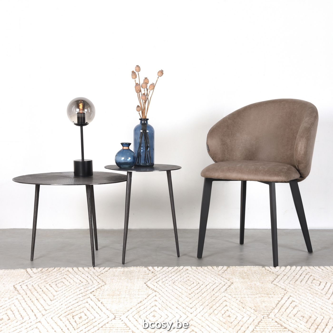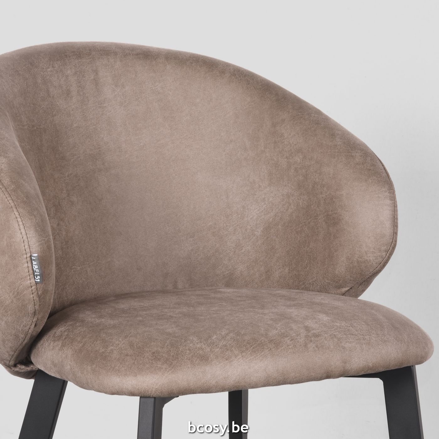 Français: LABEL51 Chaise de salle à manger Logan Taupe Micro Suede Zwart Metalen Frame