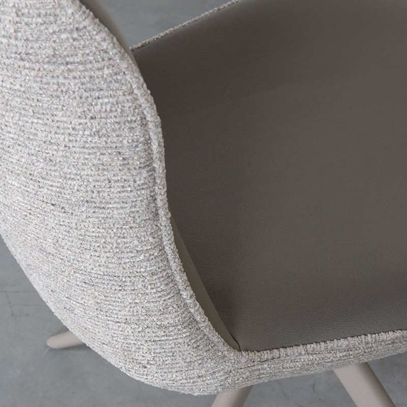 Eetkamerstoel Thorben van LABEL51 is een stijlvolle en moderne stoel die elke eetkamer naar een hoger niveau tilt. Het zitvlak van de draaistoel is uitgevoerd in Hunter PU, wat er elegant uit ziet en bovendien makkelijk te onderhouden is. De achterkant van de zitting is gestoffeerd met Naturel Canyon, wat zorgt voor een mooie, contrasterende textuur die warmte toevoegt aan elk interieur.