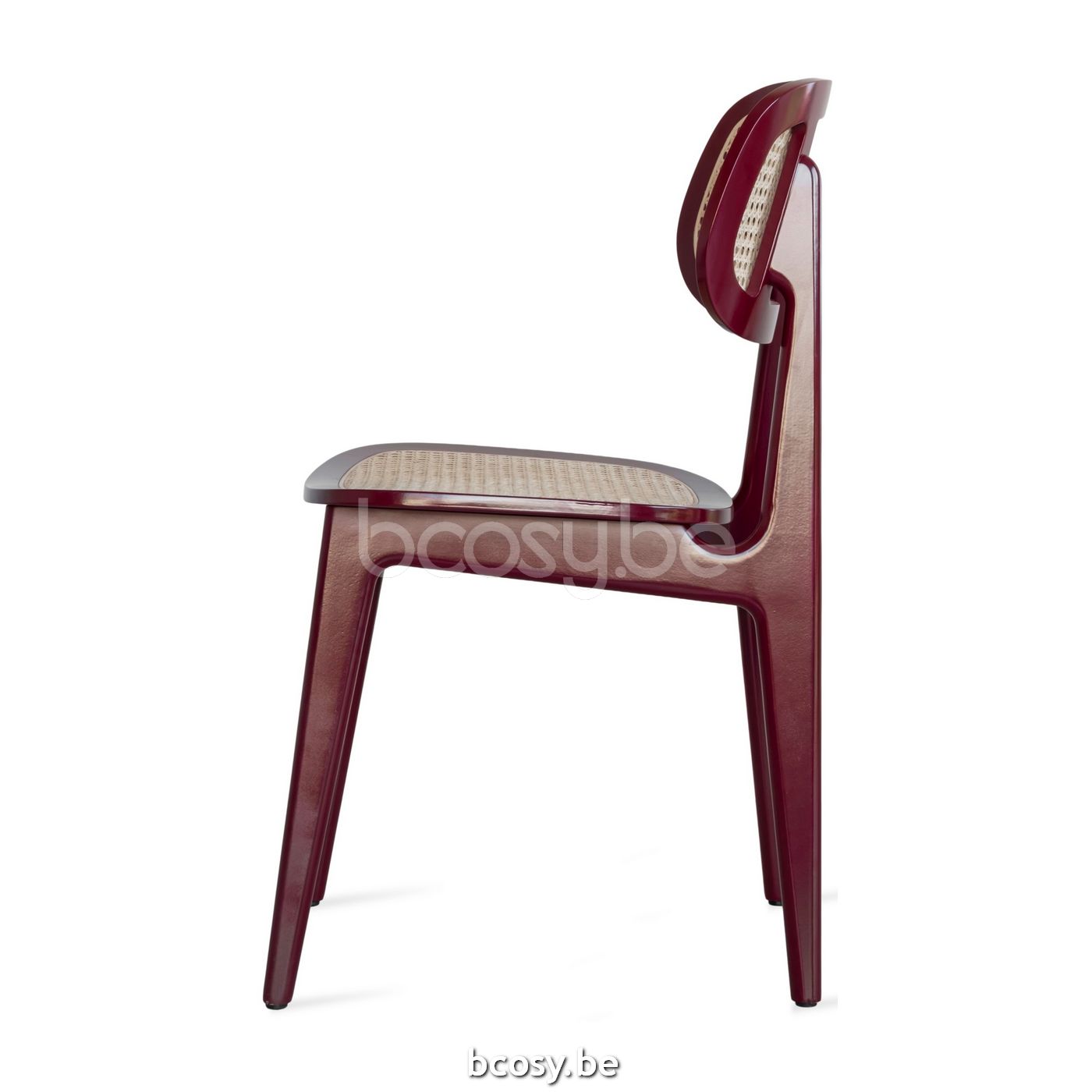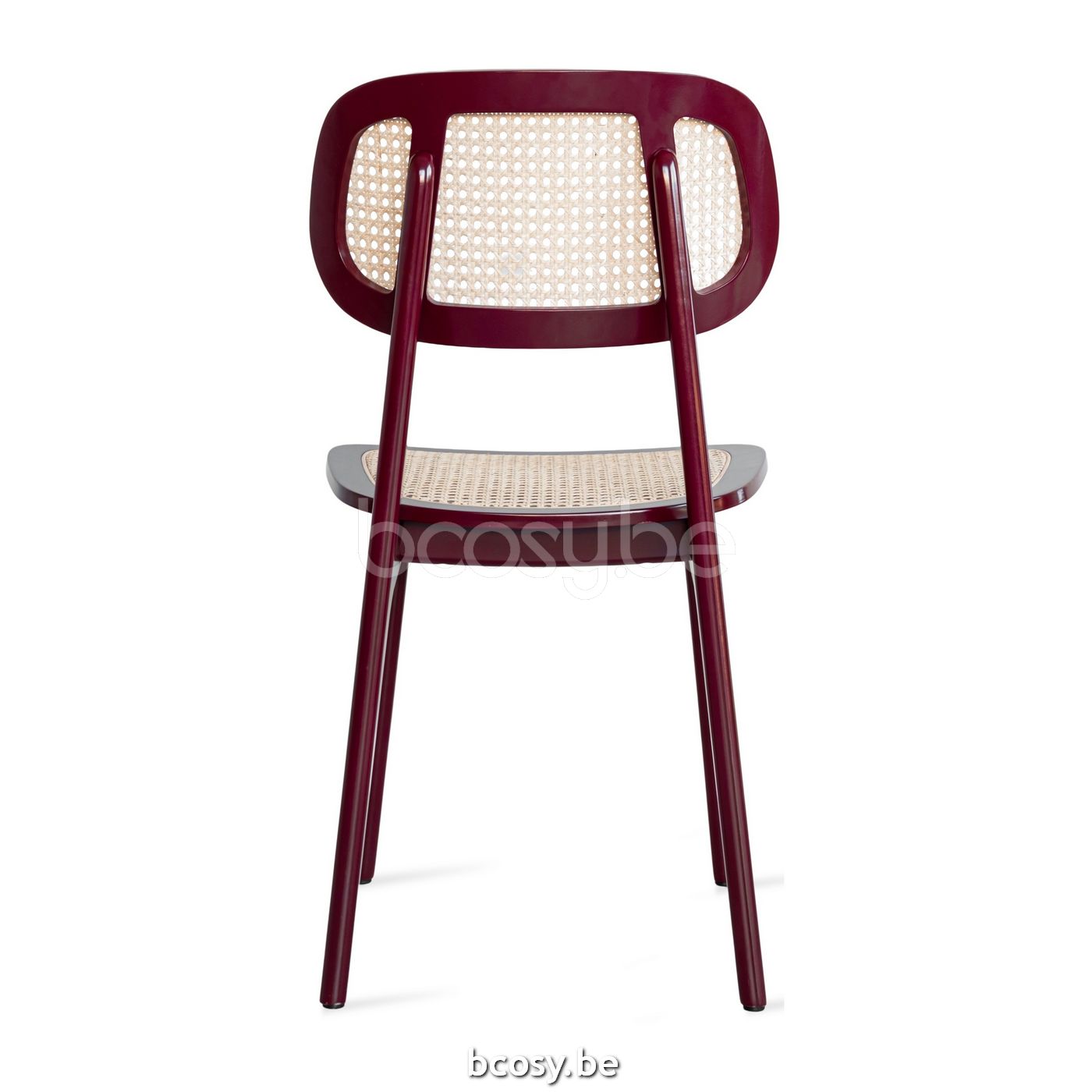 Material: Burgundy lacquered beech chair with a cane backrest and a cane seat. Felt glides.